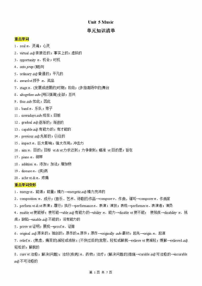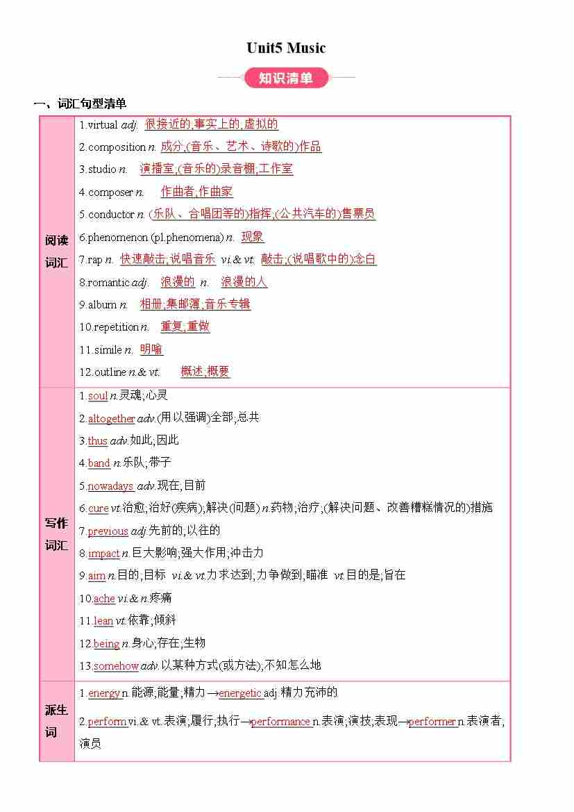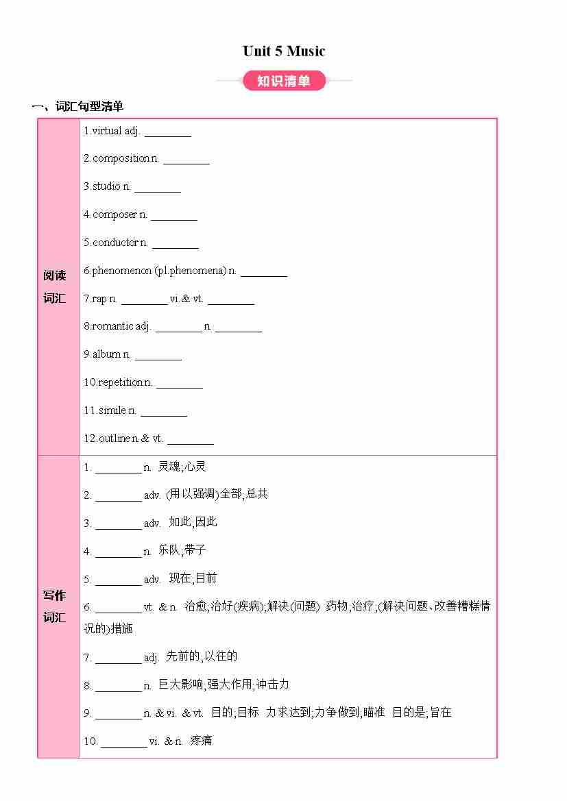 Unit 5 Music【速记清单】-2024-2025学年高一英语单元速记巧练(人教版2019必修第二册)_48346990_17489464505998294