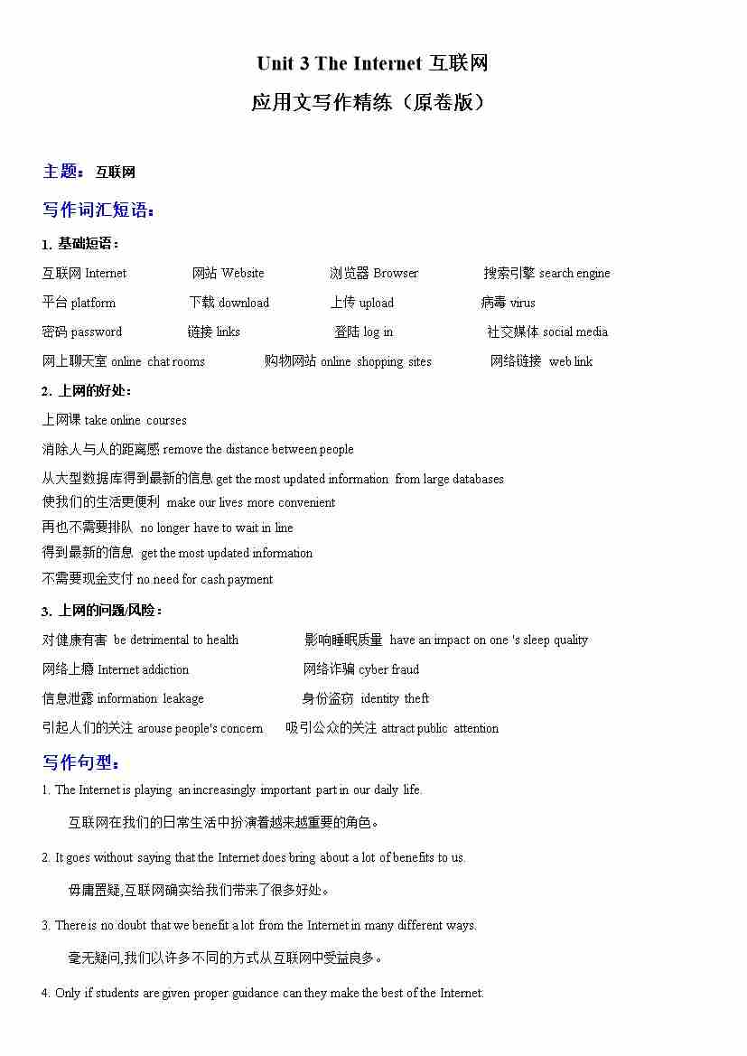 Unit 3 The Internet互联网 应用文写作精练(原卷版)