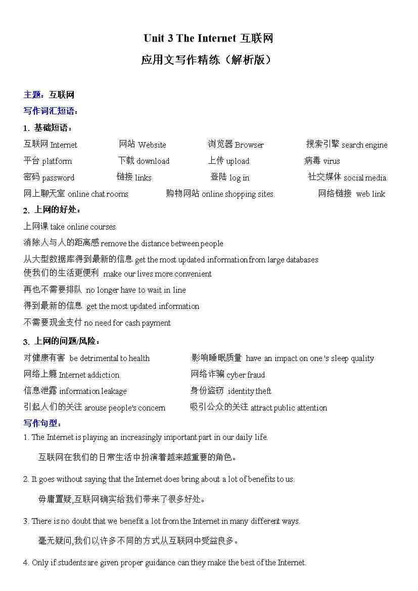 Unit 3 The Internet互联网 应用文写作精练(解析版)