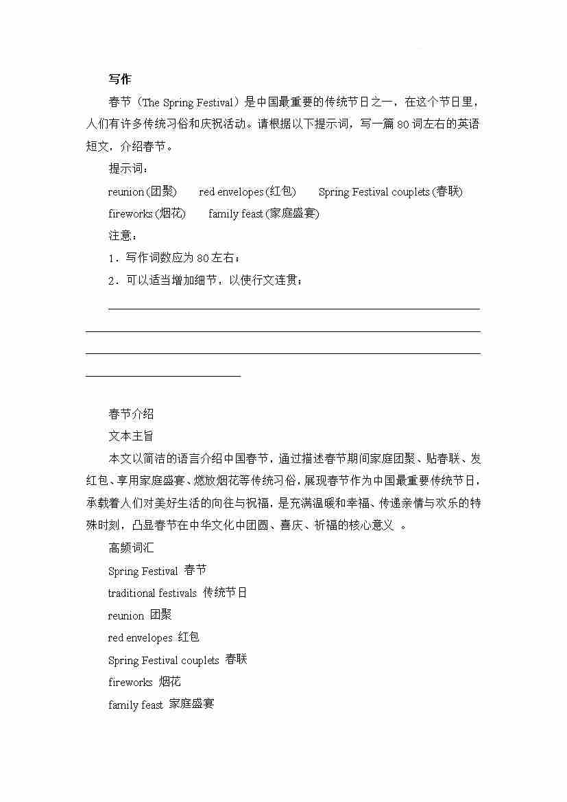 应用文写作 春节介绍 讲义-吉林省友好学校第79届期中联考2024-2025学年高一下学期4月期中英语试题