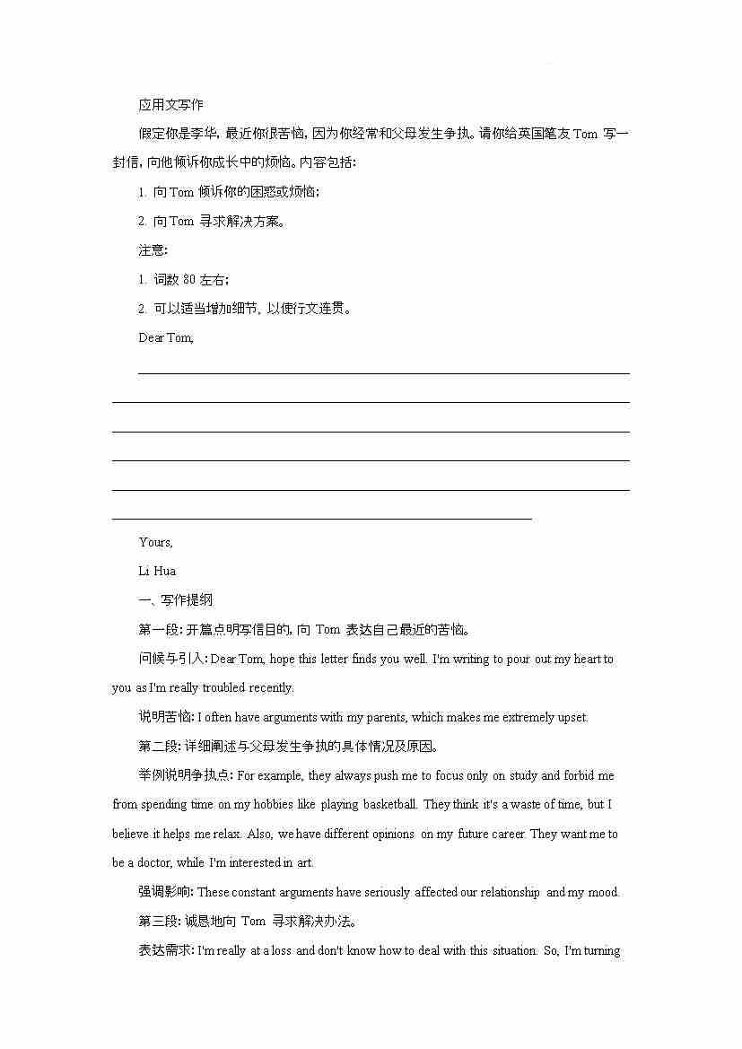 应用文写作 给Tom关于家庭矛盾的书信 讲义-黑龙江省大庆市让胡路区大庆市大庆中学2024-2025学年高一下学期开学英语试题