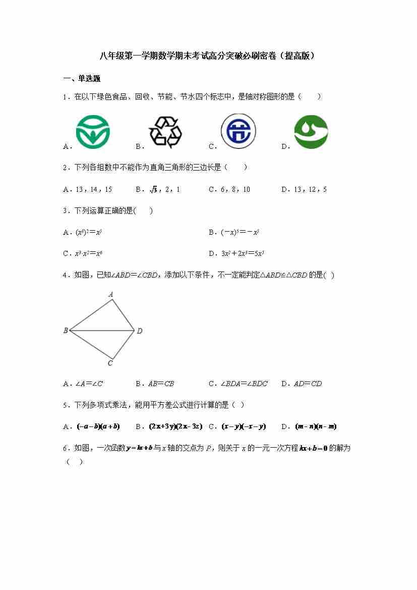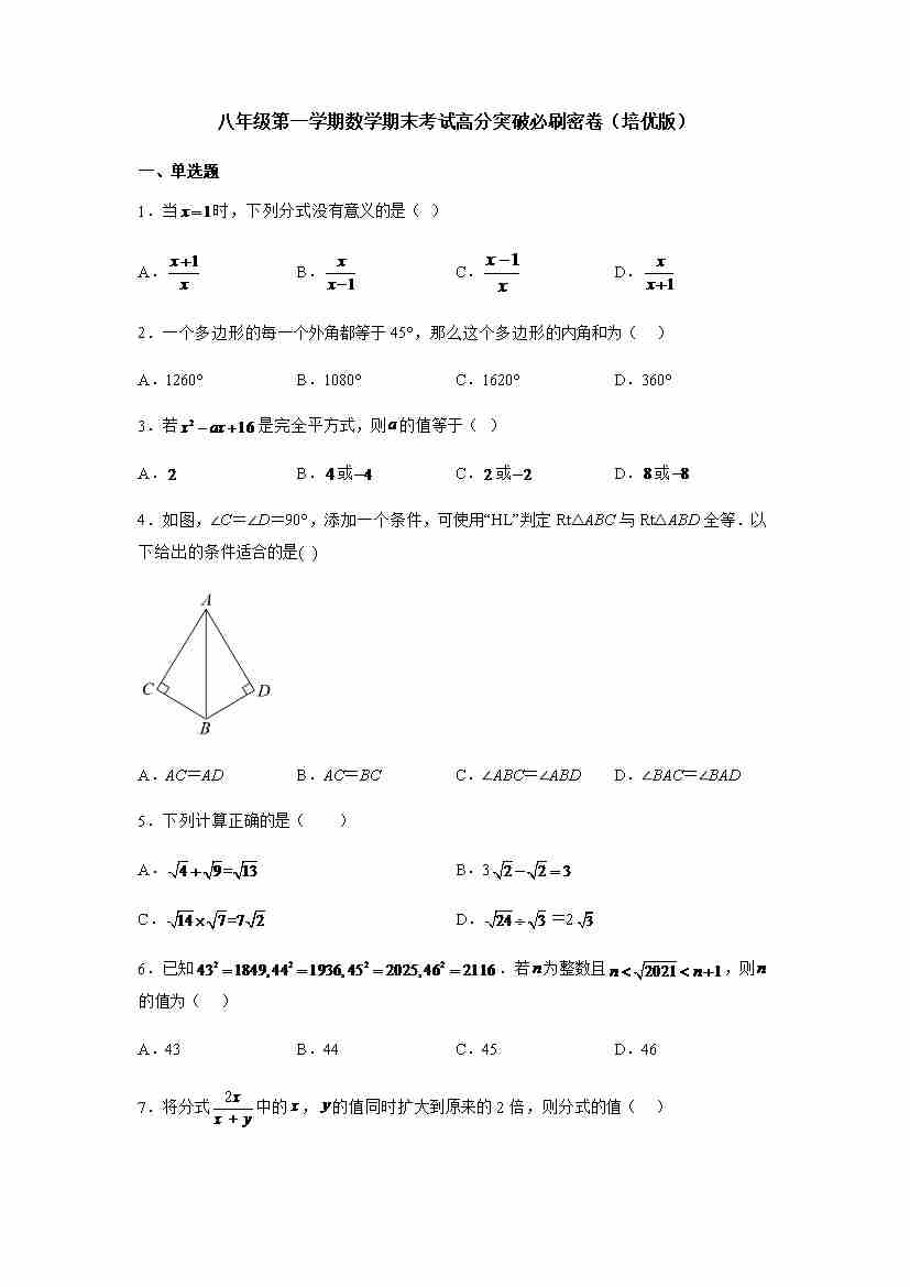 八年级第一学期数学期末考试高分突破必刷密卷(学生版)培优卷