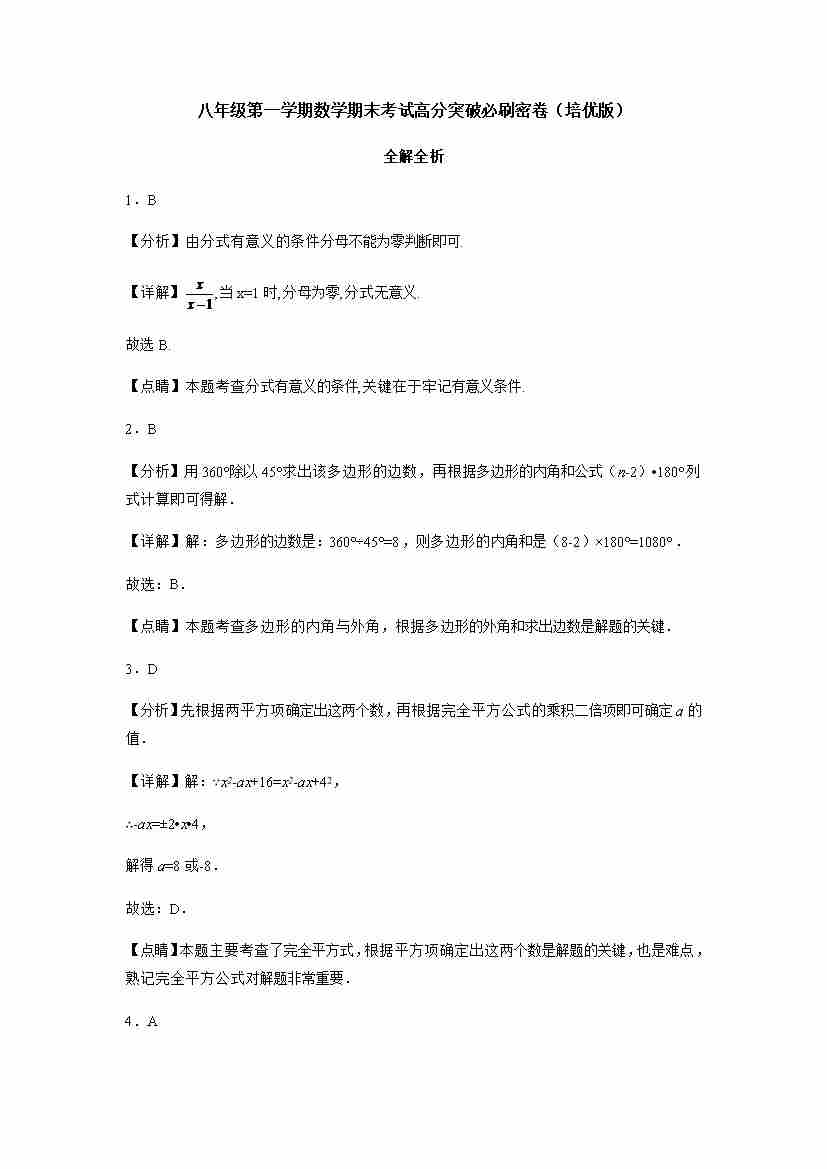 八年级第一学期数学期末考试高分突破必刷密卷(解析版)培优卷