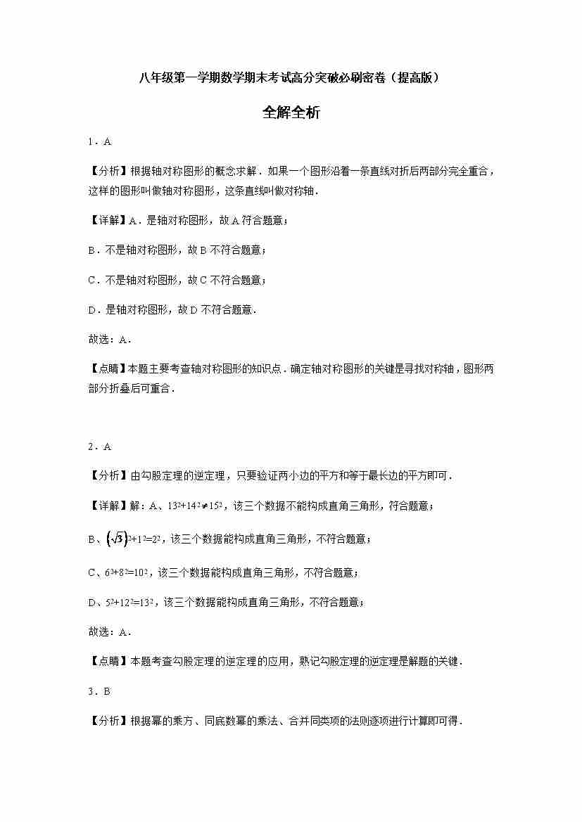八年级第一学期数学期末考试高分突破必刷密卷(解析版)提高卷
