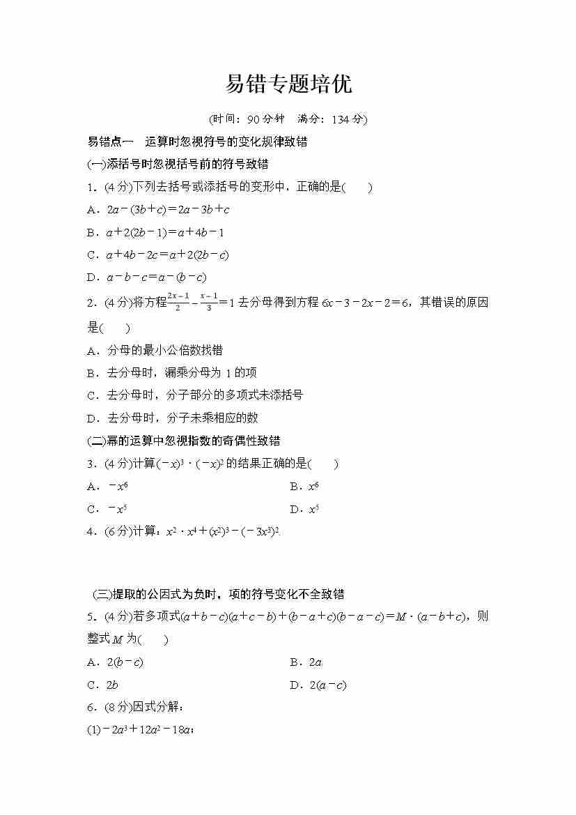 2025-2026学年人教版八年级数学上册易错专题培优(含答案)