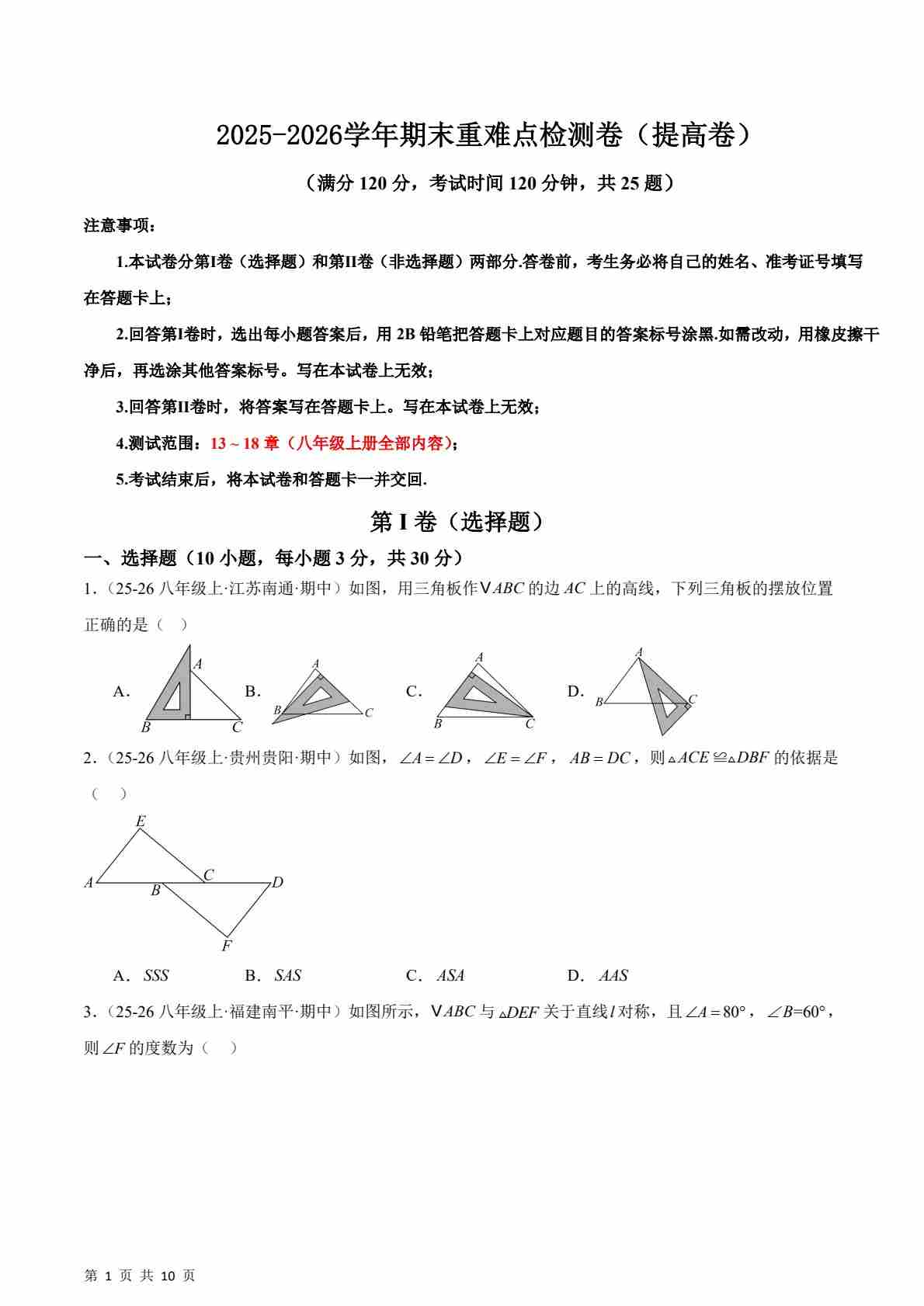 2025-2026学年人教版八年级数学上册创新考向集训试卷(含答案)