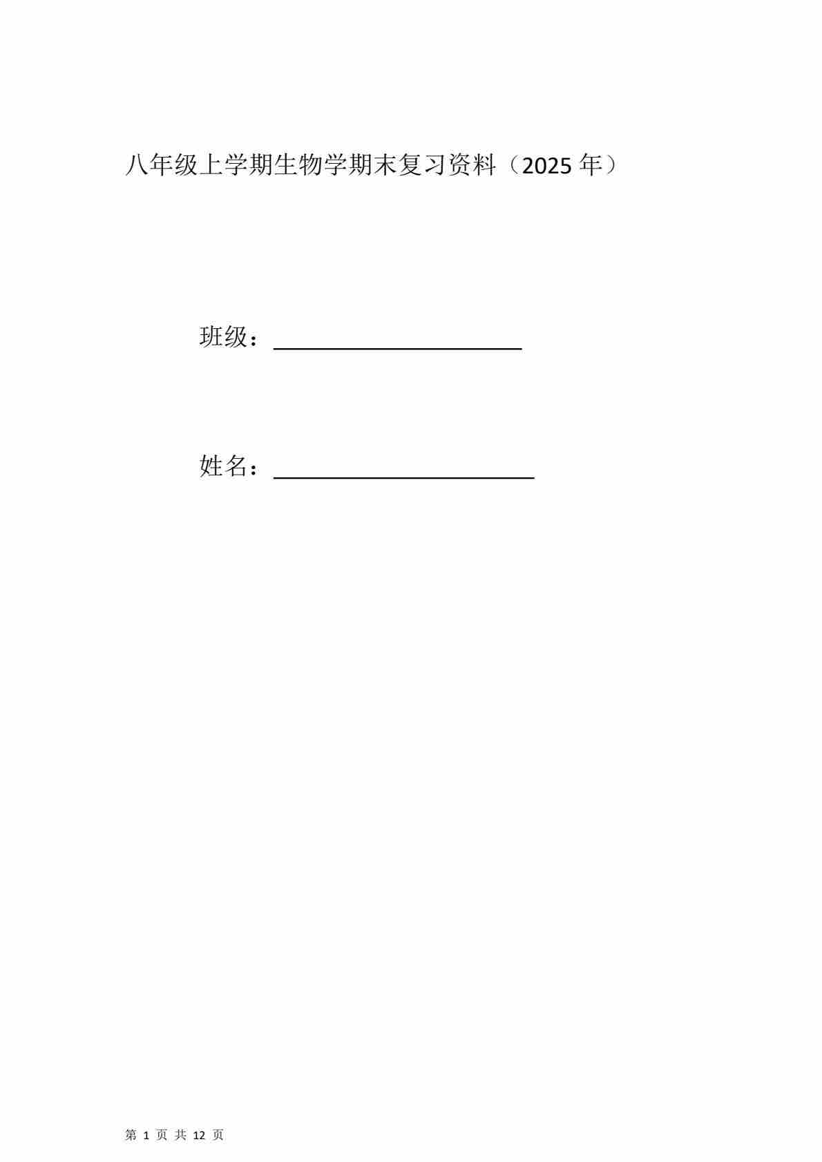 2025年八年级上学期期末复习资料(学生版)