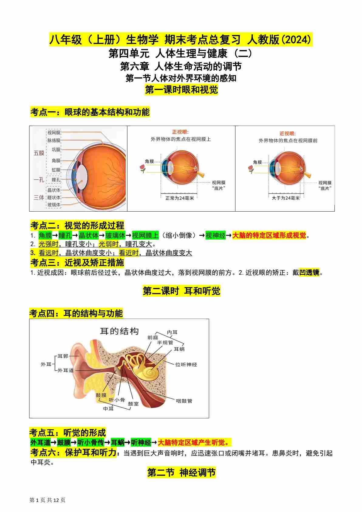 考点总复习-2025--2026学年人教版生物八年级上册