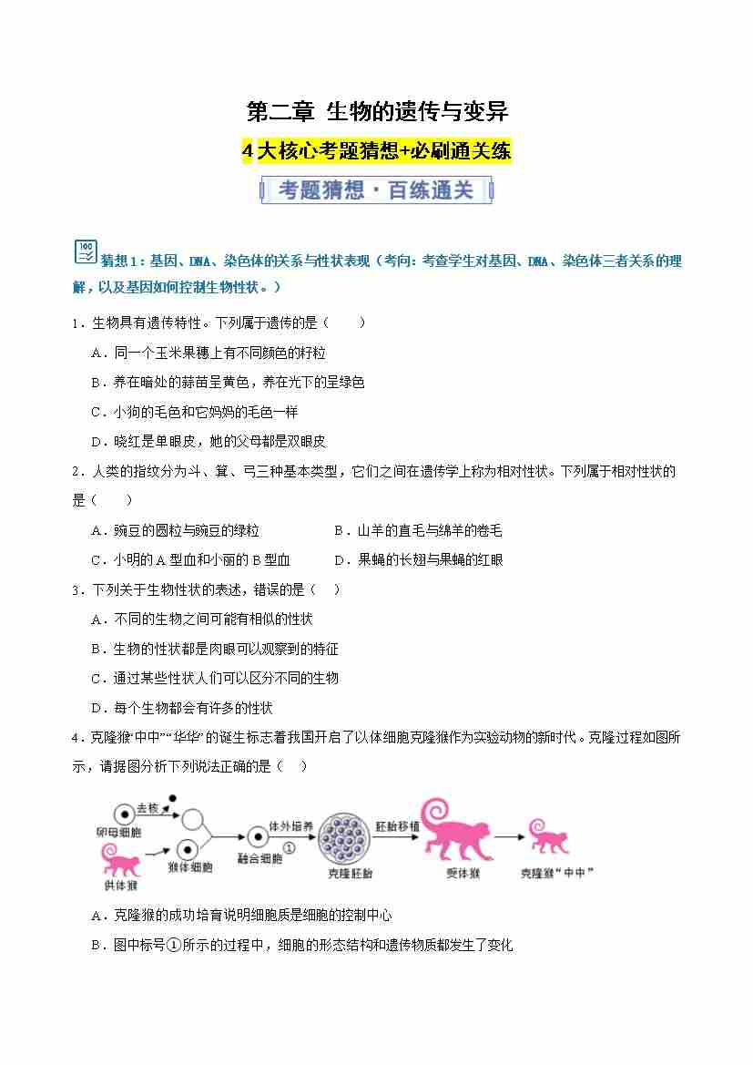 第六单元 第二章 生物的遗传与变异 (期末专项训练)(原卷版)