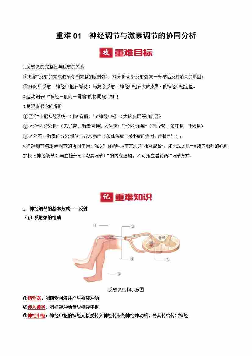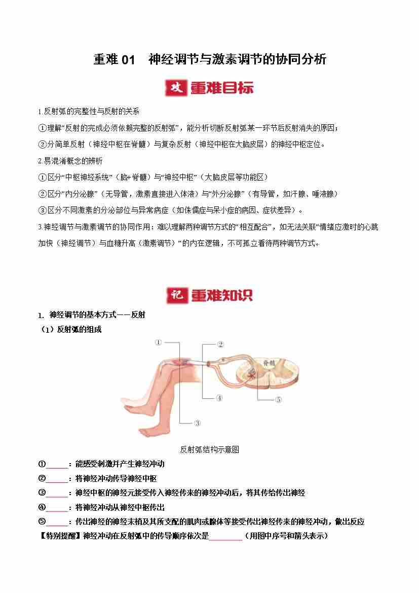 重难01 神经调节与激素调节的协同分析(重难点突破讲义)(原卷版)