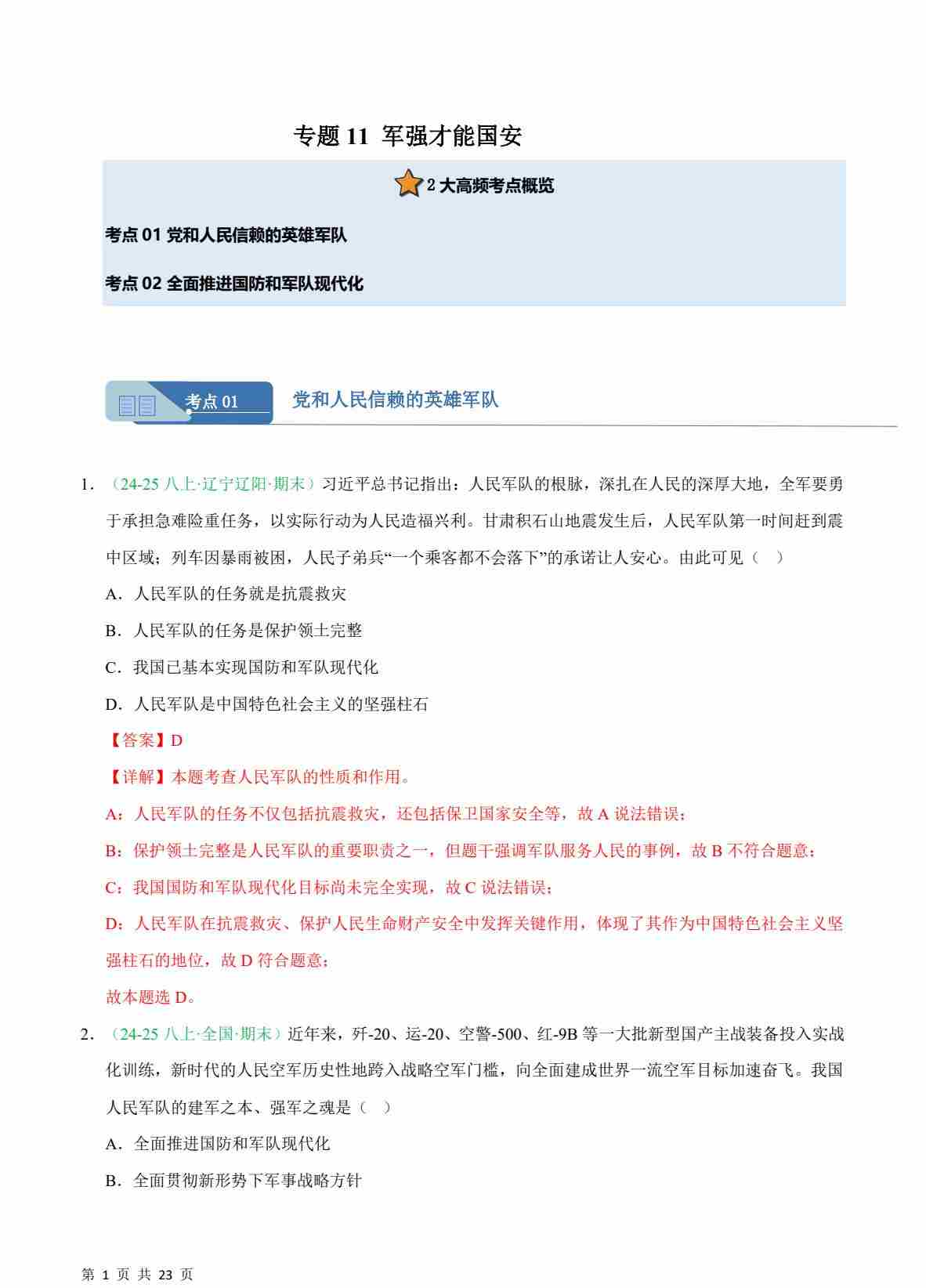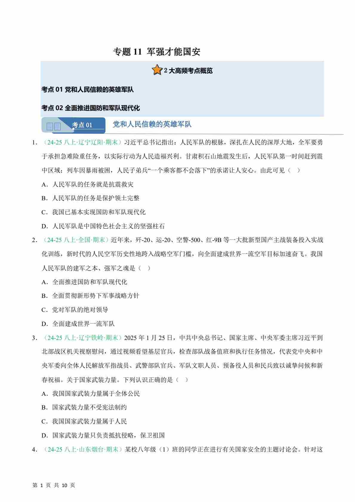 专题11 军强才能国安(期末真题汇编,统编版)(解析版)