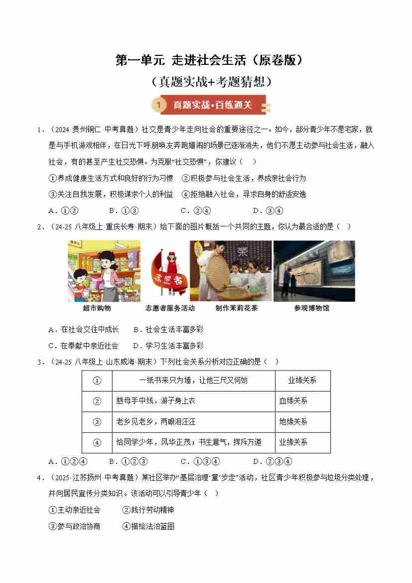 第一单元 走进社会生活(期末专项训练)(原卷版)