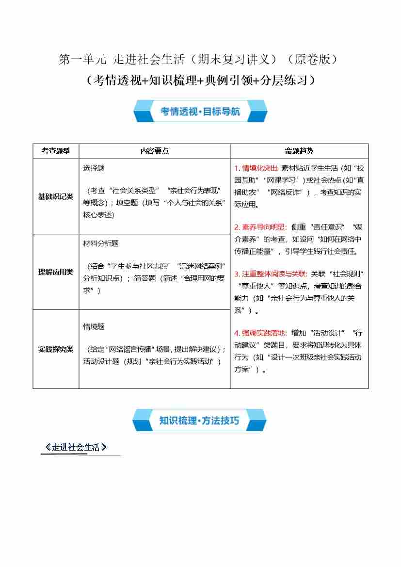 第一单元 走进社会生活(期末复习讲义) (原卷版)