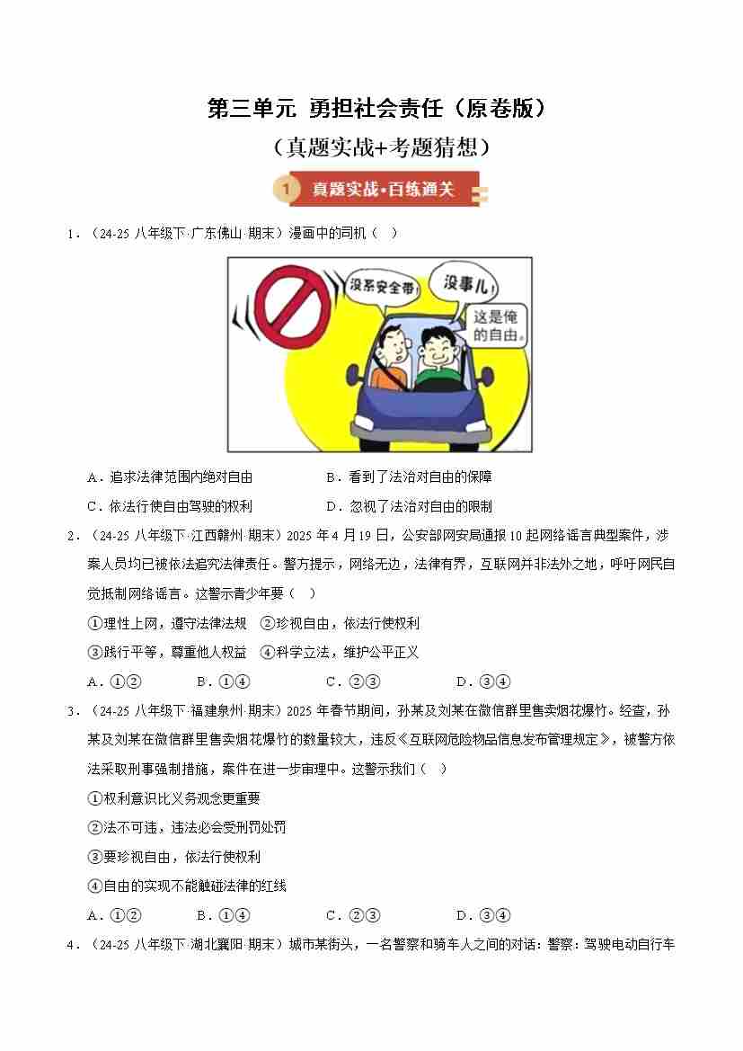 第三单元 勇担社会责任(期末专项训练)(原卷版)