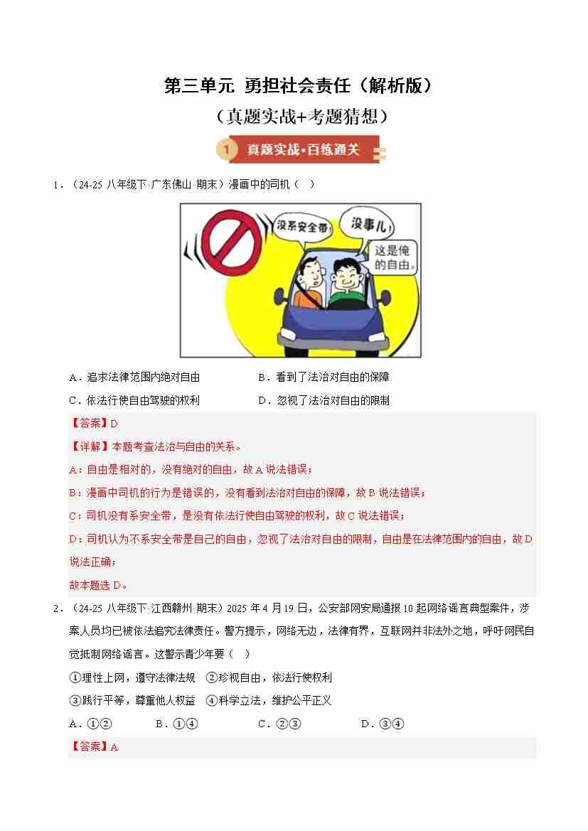 第三单元 勇担社会责任(期末专项训练)(解析版)