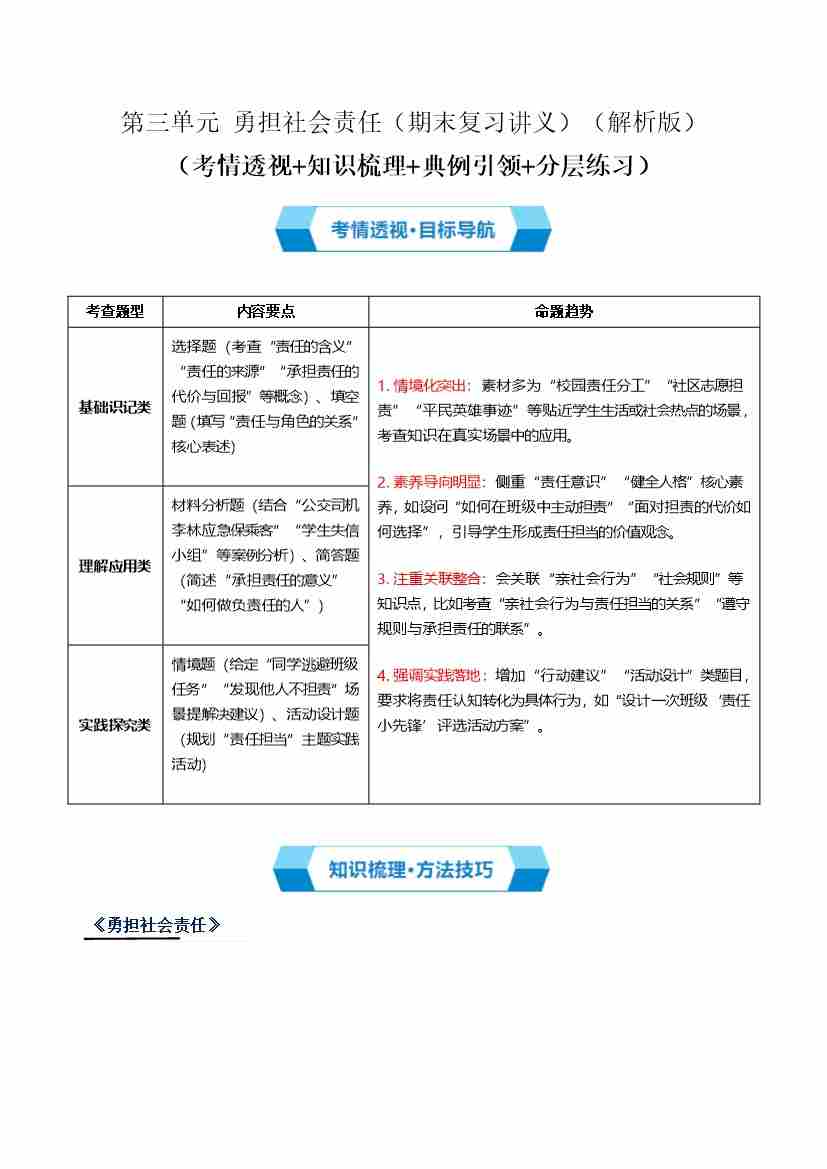 第三单元 勇担社会责任(期末复习讲义) (解析版)