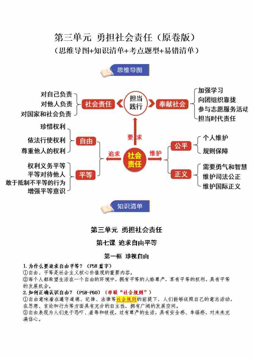 第三单元 勇担社会责任(期末知识清单)(原卷版)