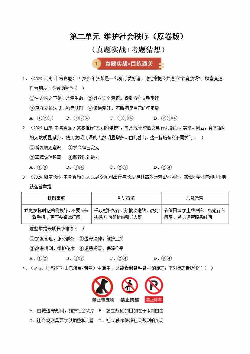 第二单元 维护社会秩序(期末专项训练)(原卷版)
