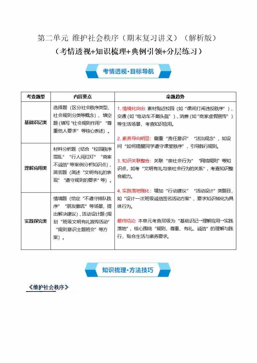 第二单元 维护社会秩序(期末复习讲义) (解析版)
