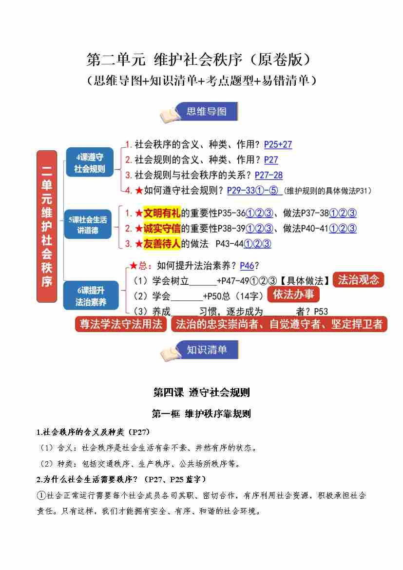 第二单元 维护社会秩序(期末知识清单)(原卷版)