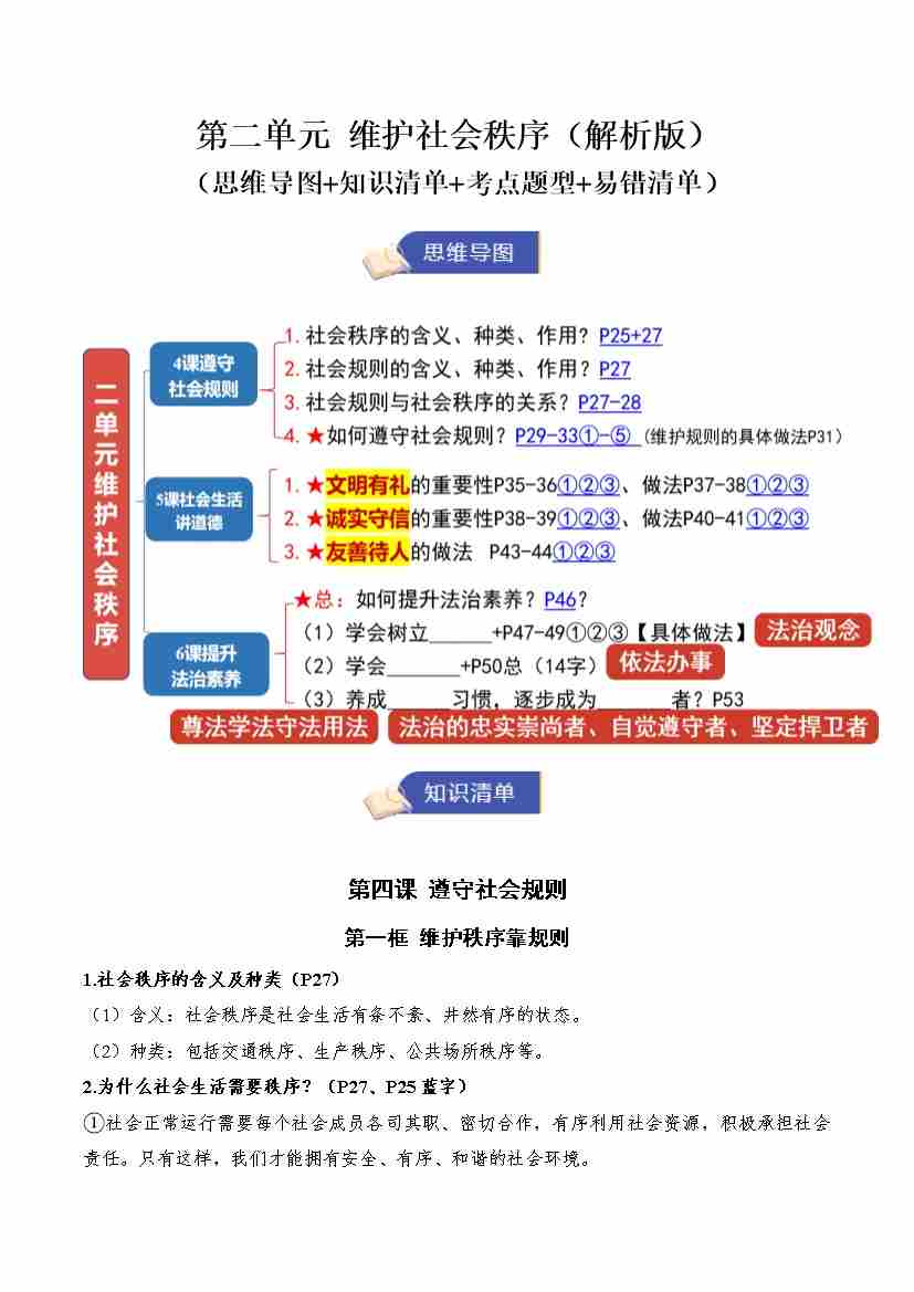第二单元 维护社会秩序(期末知识清单)(解析版)