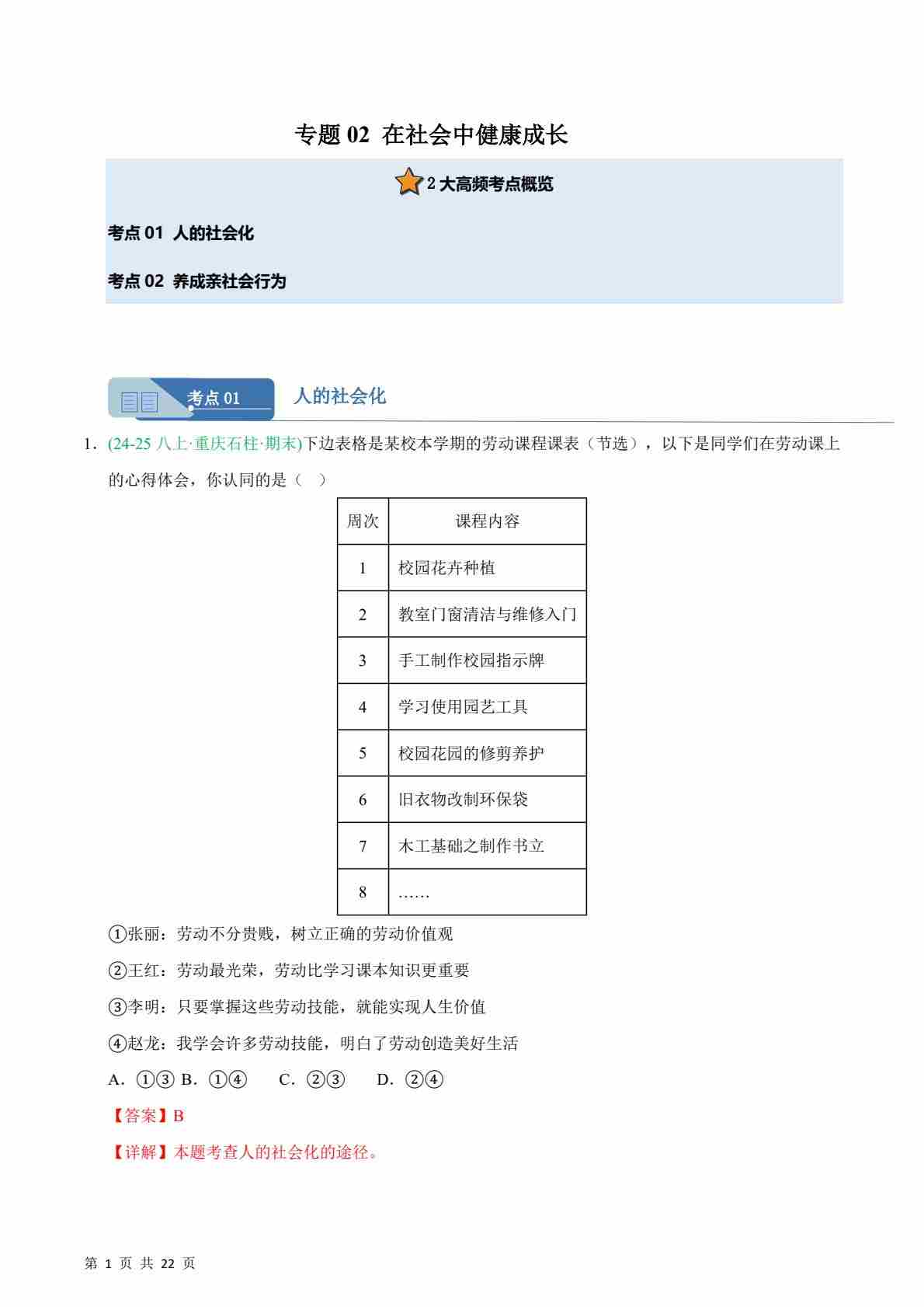 专题02 在社会中健康成长(期末真题汇编,统编版)(解析版)