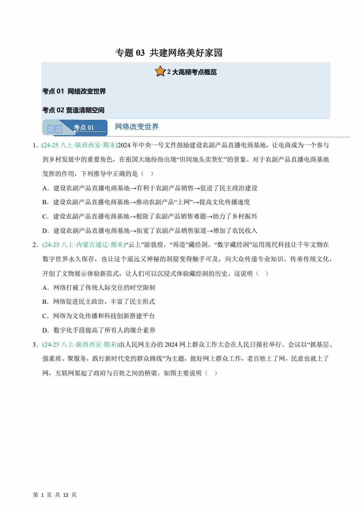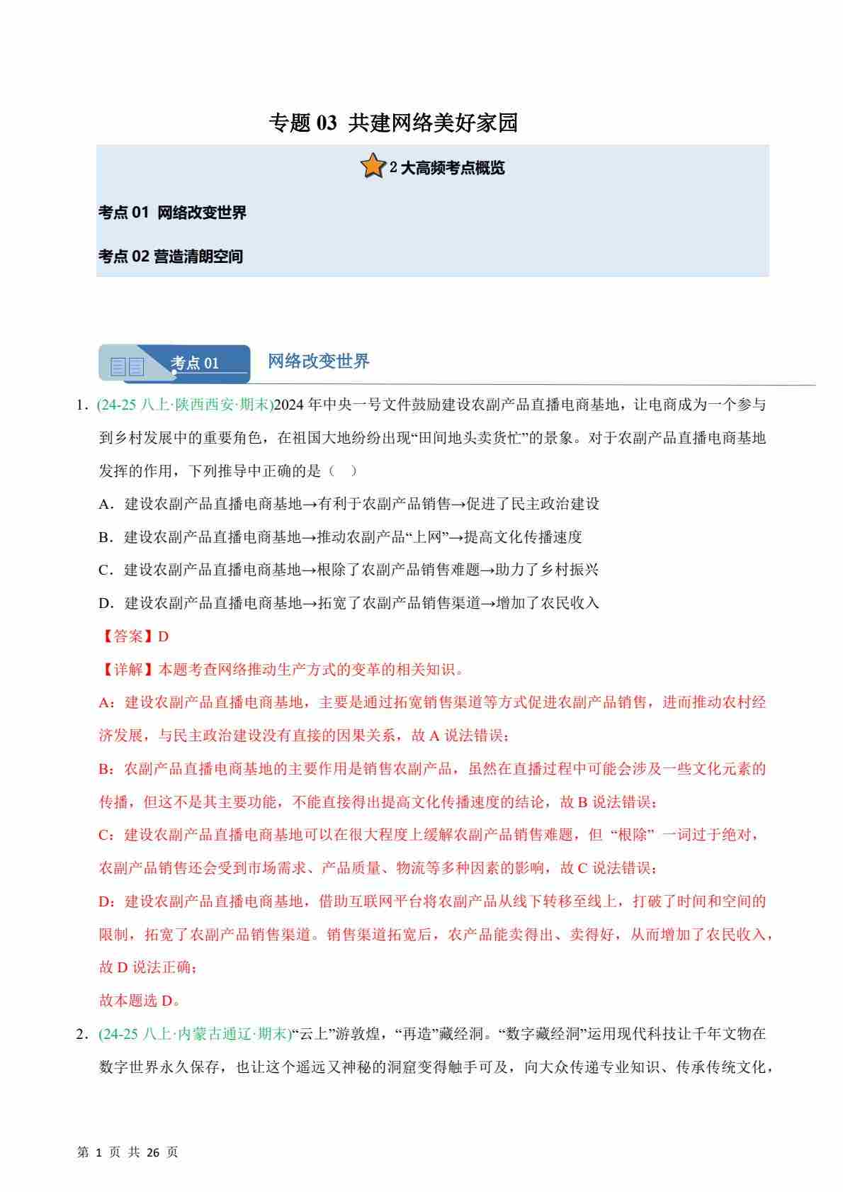 专题03 共建网络美好家园(期末真题汇编,统编版)(解析版)