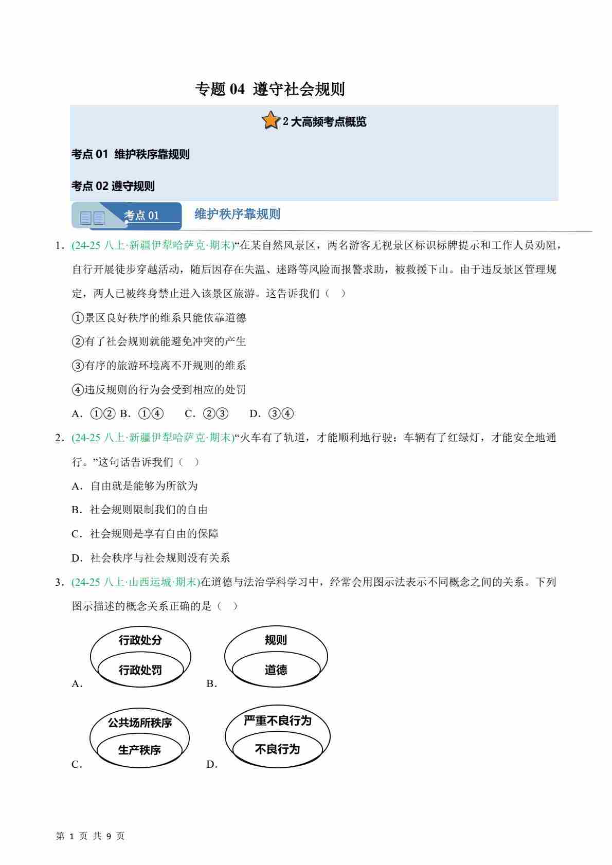 专题04 遵守社会规则(期末真题汇编,统编版)(原卷版)