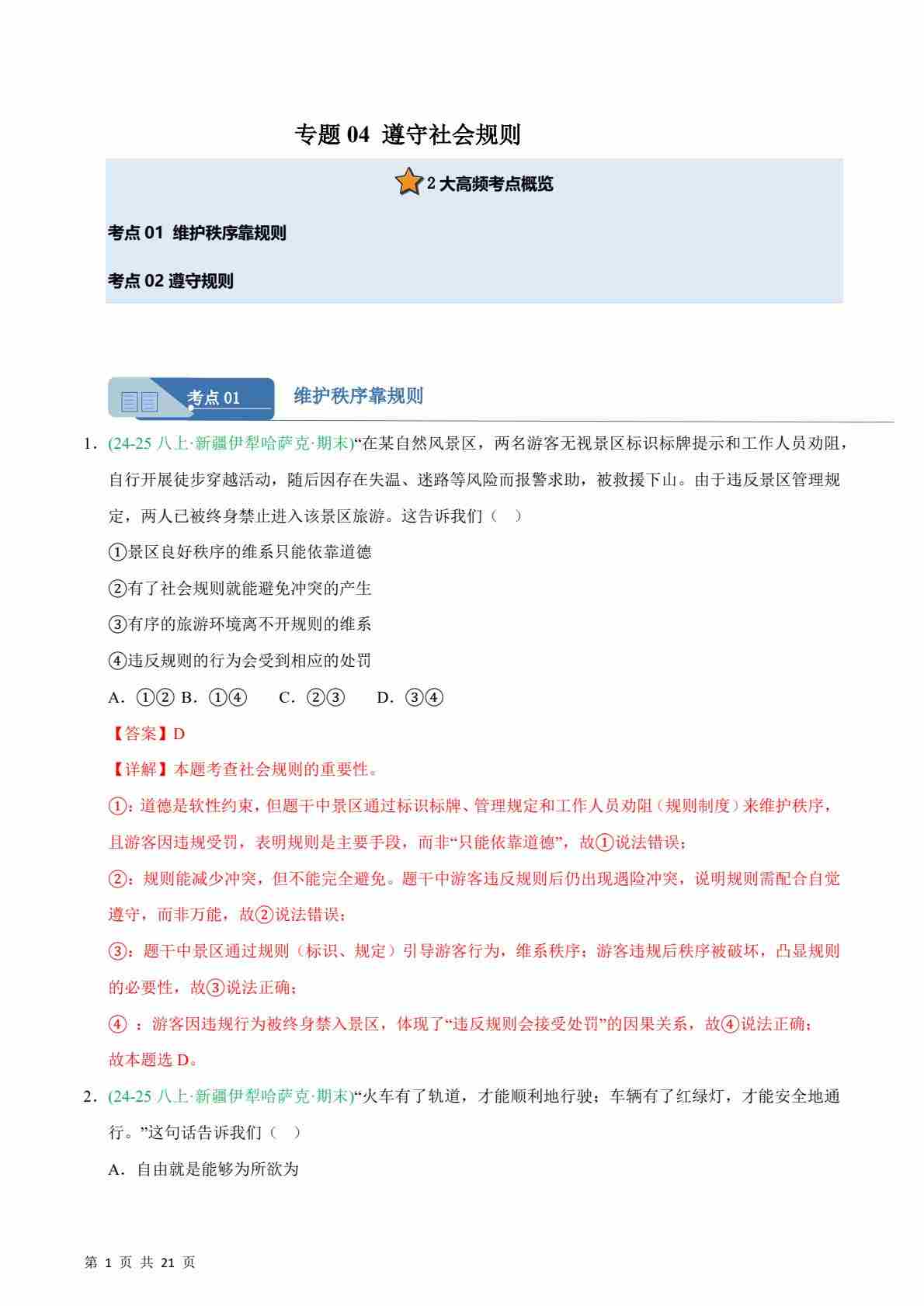 专题04 遵守社会规则(期末真题汇编,统编版)(解析版)