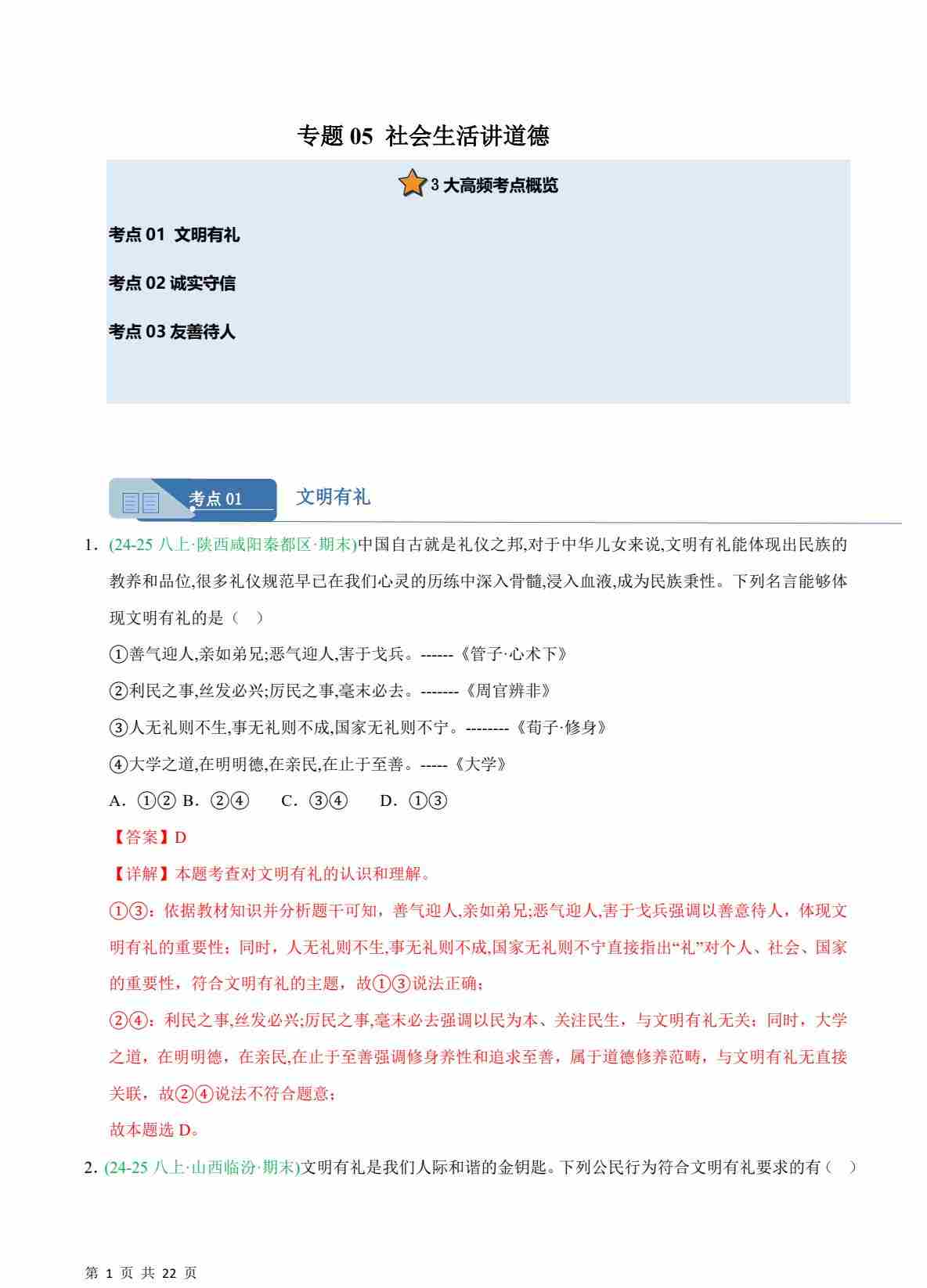 专题05 社会生活讲道德(期末真题汇编,统编版)(解析版)