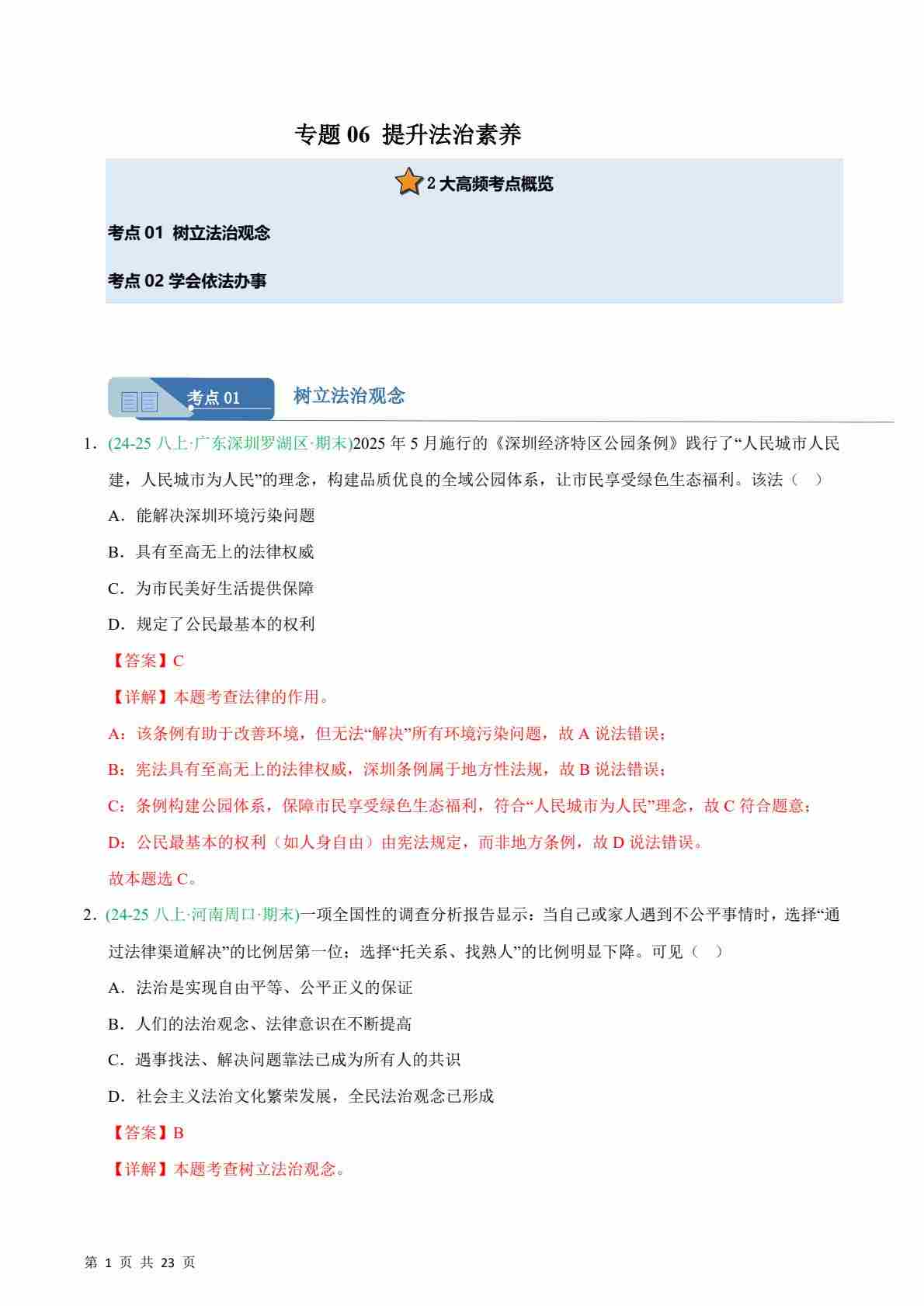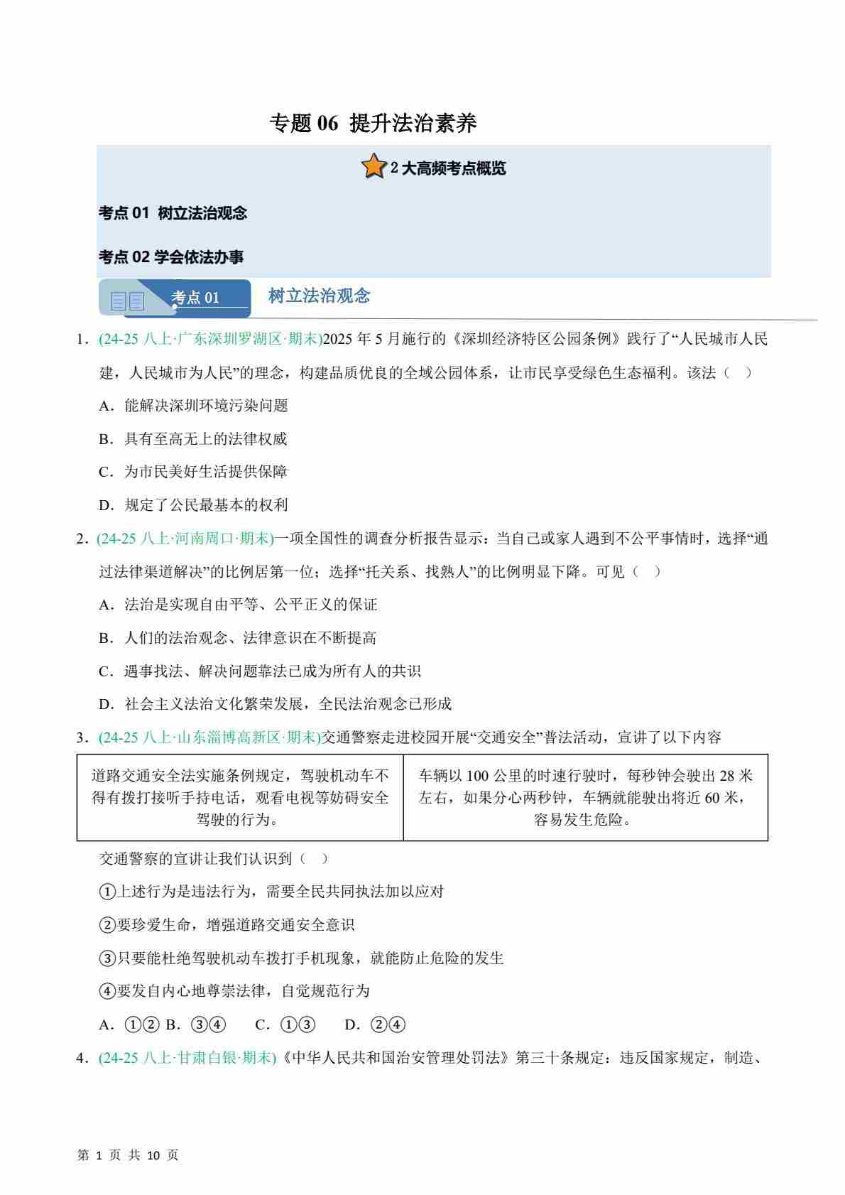 专题06 提升法治素养(期末真题汇编,统编版)(解析版)