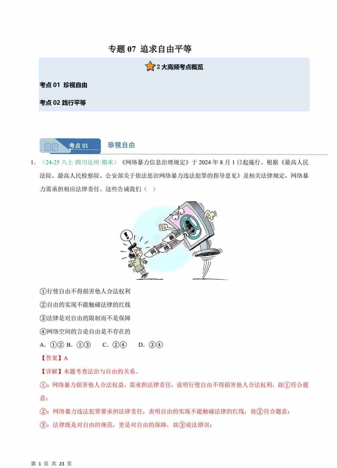 专题07 追求自由平等(期末真题汇编,统编版)(解析版)