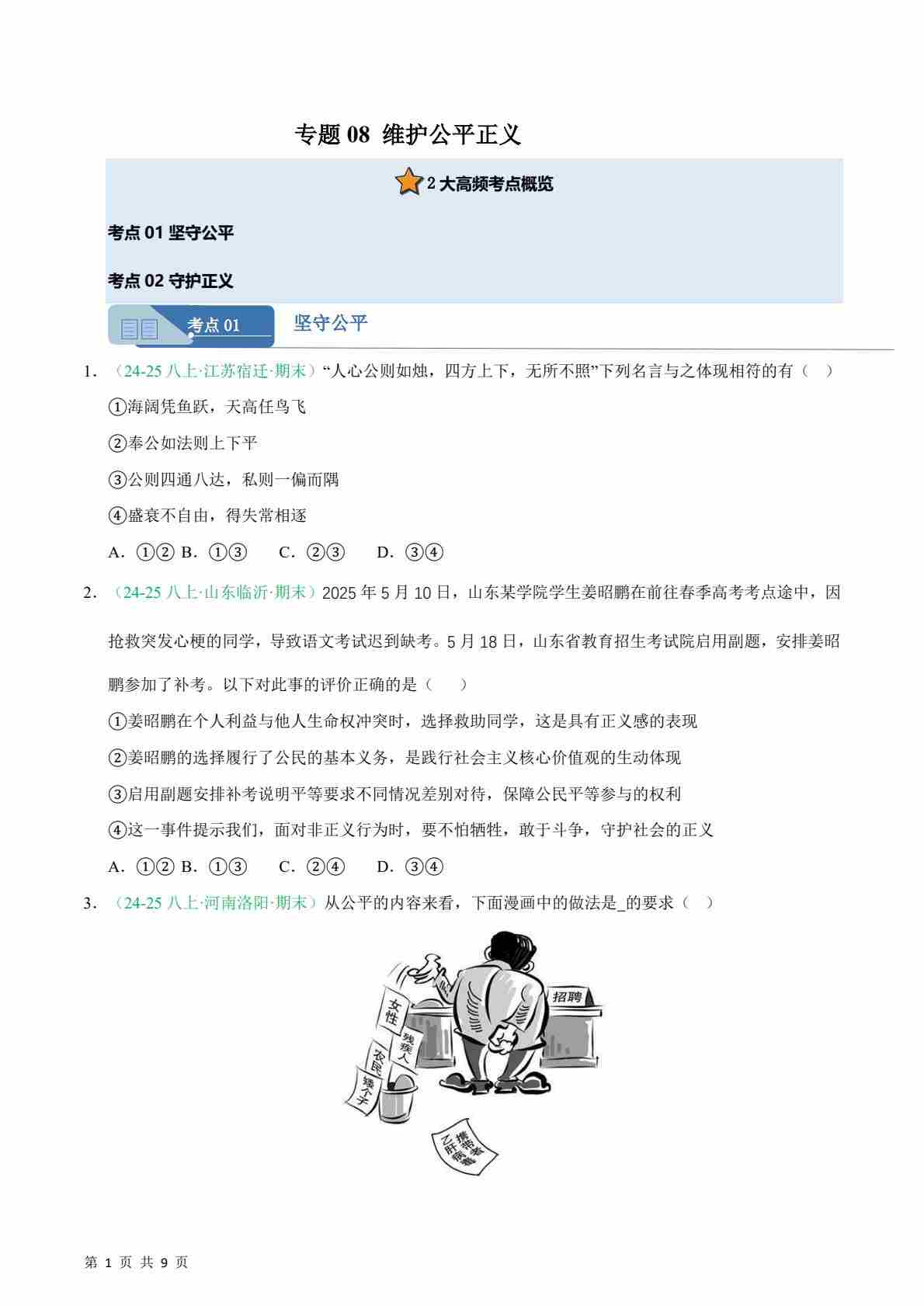 专题08 维护公平正义(期末真题汇编,统编版)(原卷版)