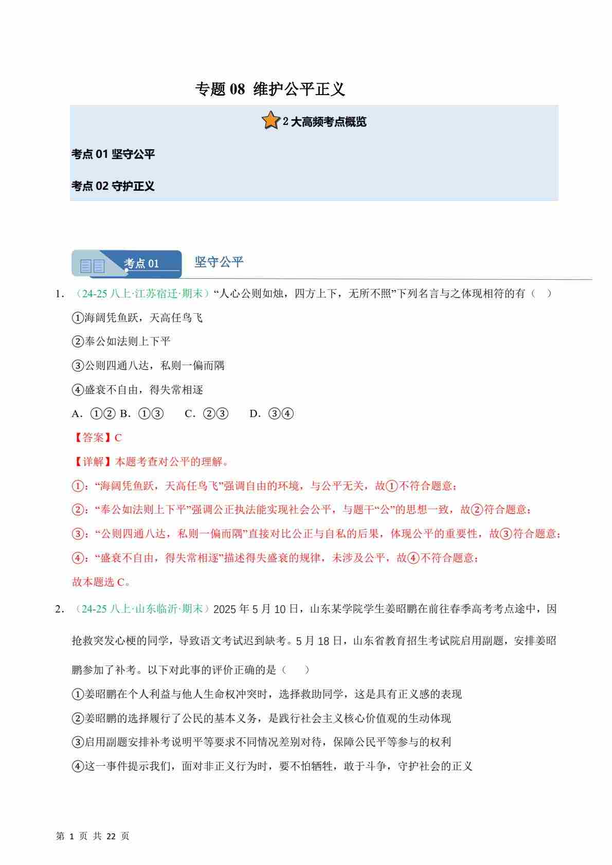 专题08 维护公平正义(期末真题汇编,统编版)(解析版)
