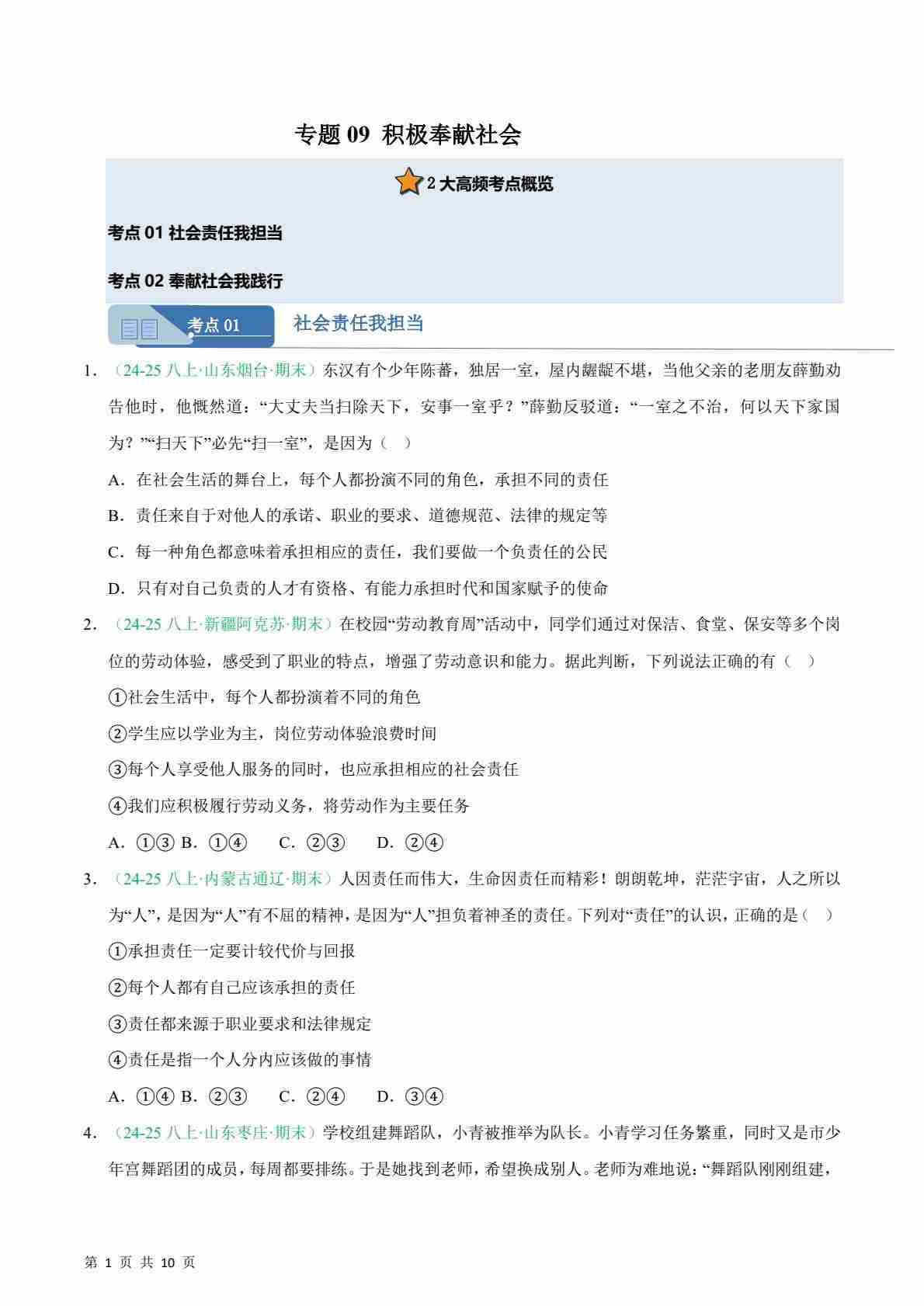 专题09 积极奉献社会(期末真题汇编,统编版)(原卷版)