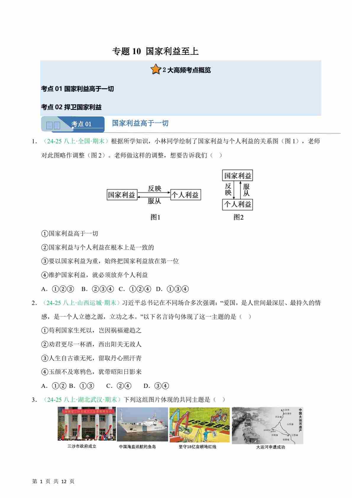 专题10 国家利益至上(期末真题汇编,统编版)(解析版)