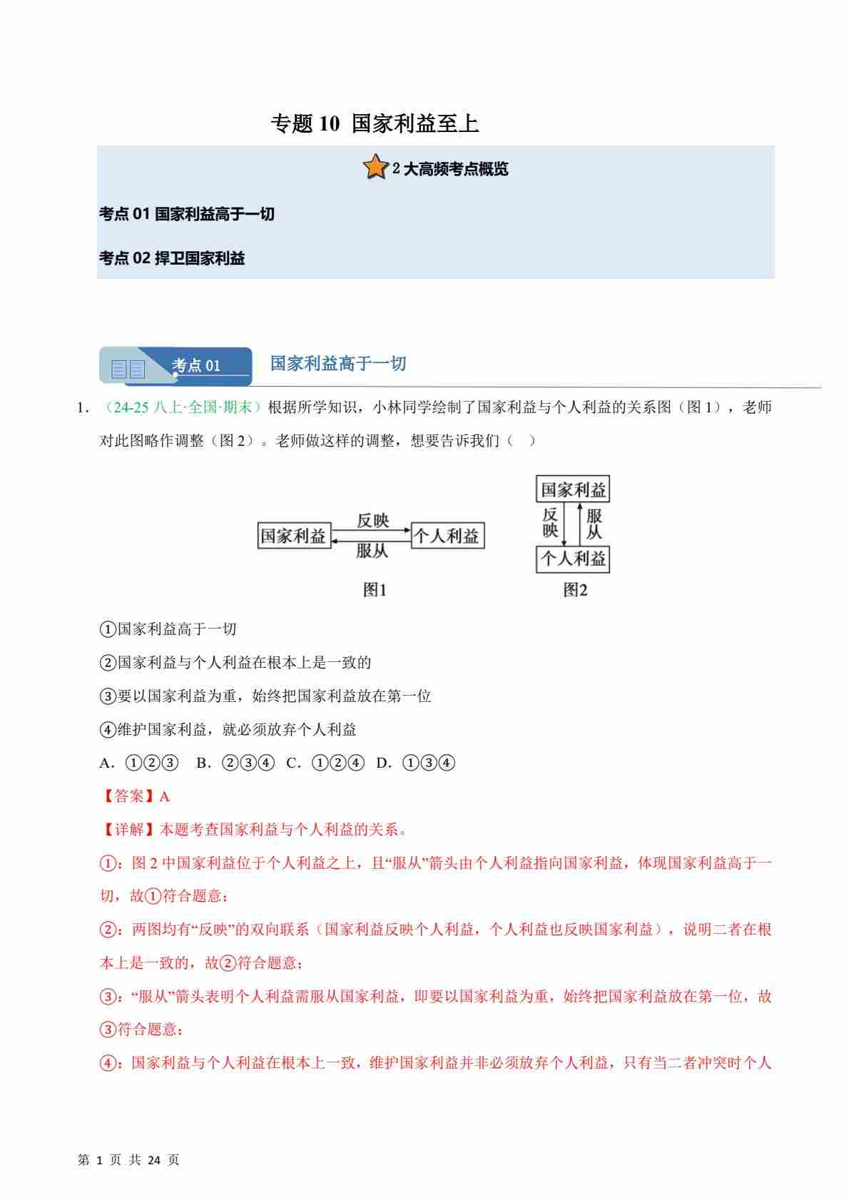专题10 国家利益至上(期末真题汇编,统编版)(解析版)