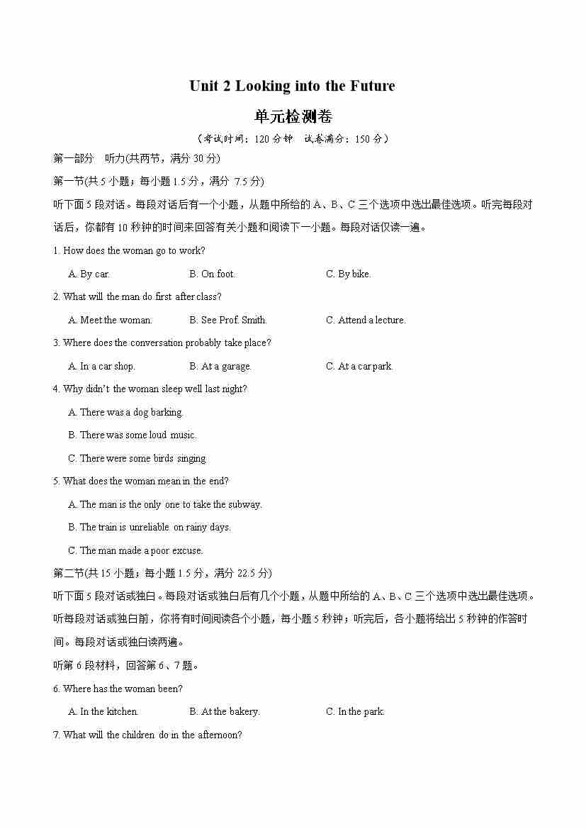 08.Unit 2 Looking into the Future单元检测卷(学生版)