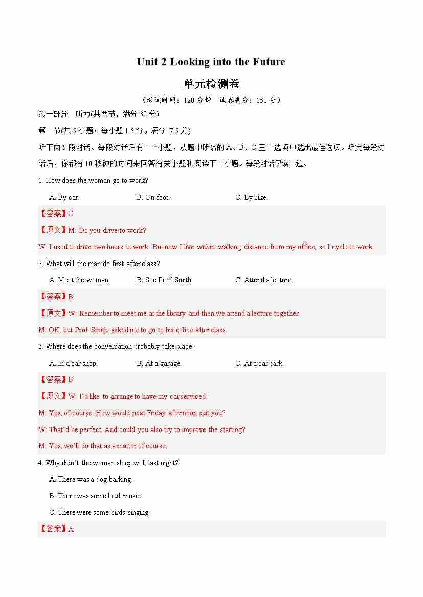 08.Unit 2 Looking into the Future单元检测卷(教师版)