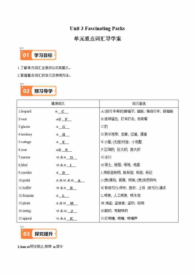 09.Unit 3 Fascinating Parks单元重点词汇导学案(教师版)