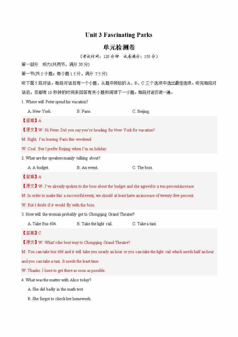12.Unit 3 Fascinating Parks单元检测卷(教师版)