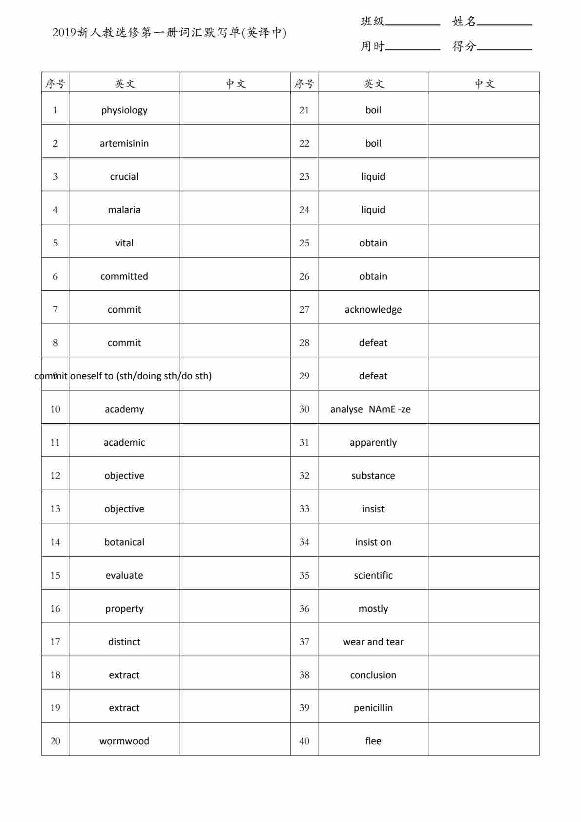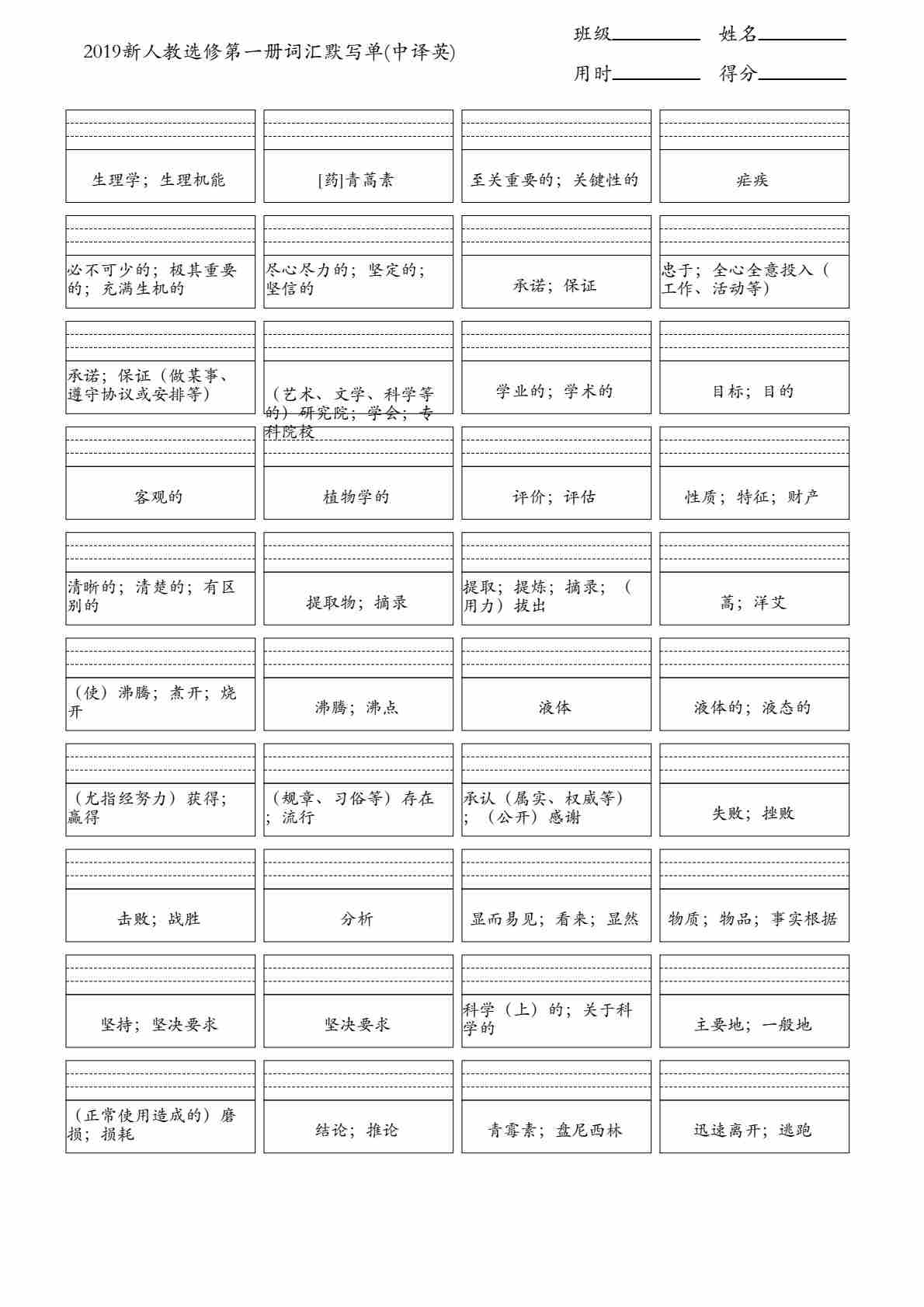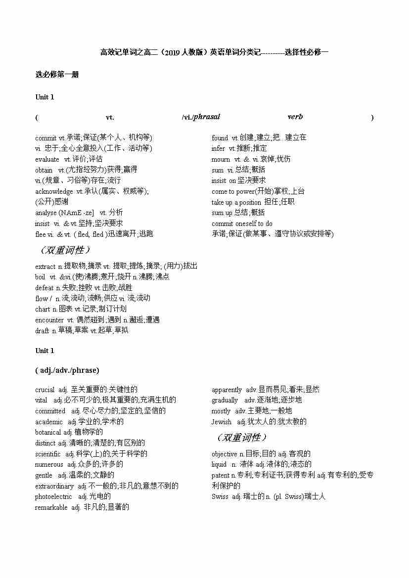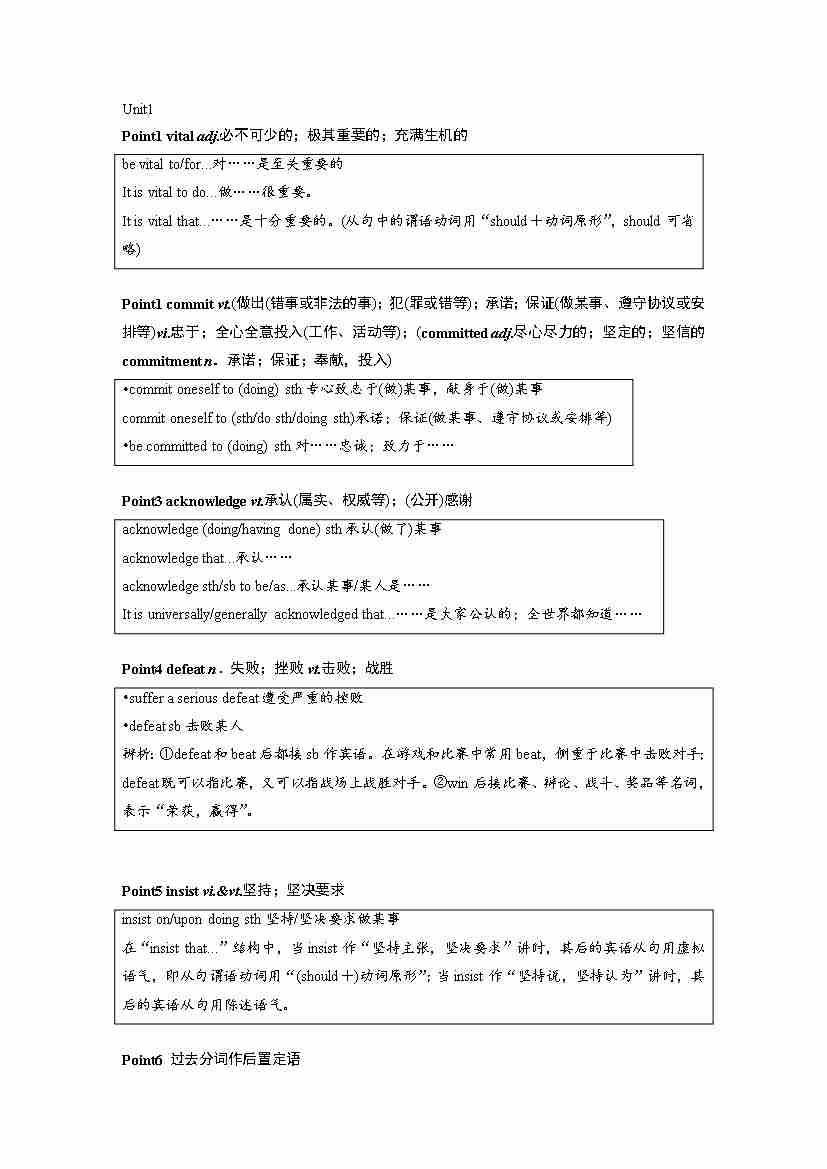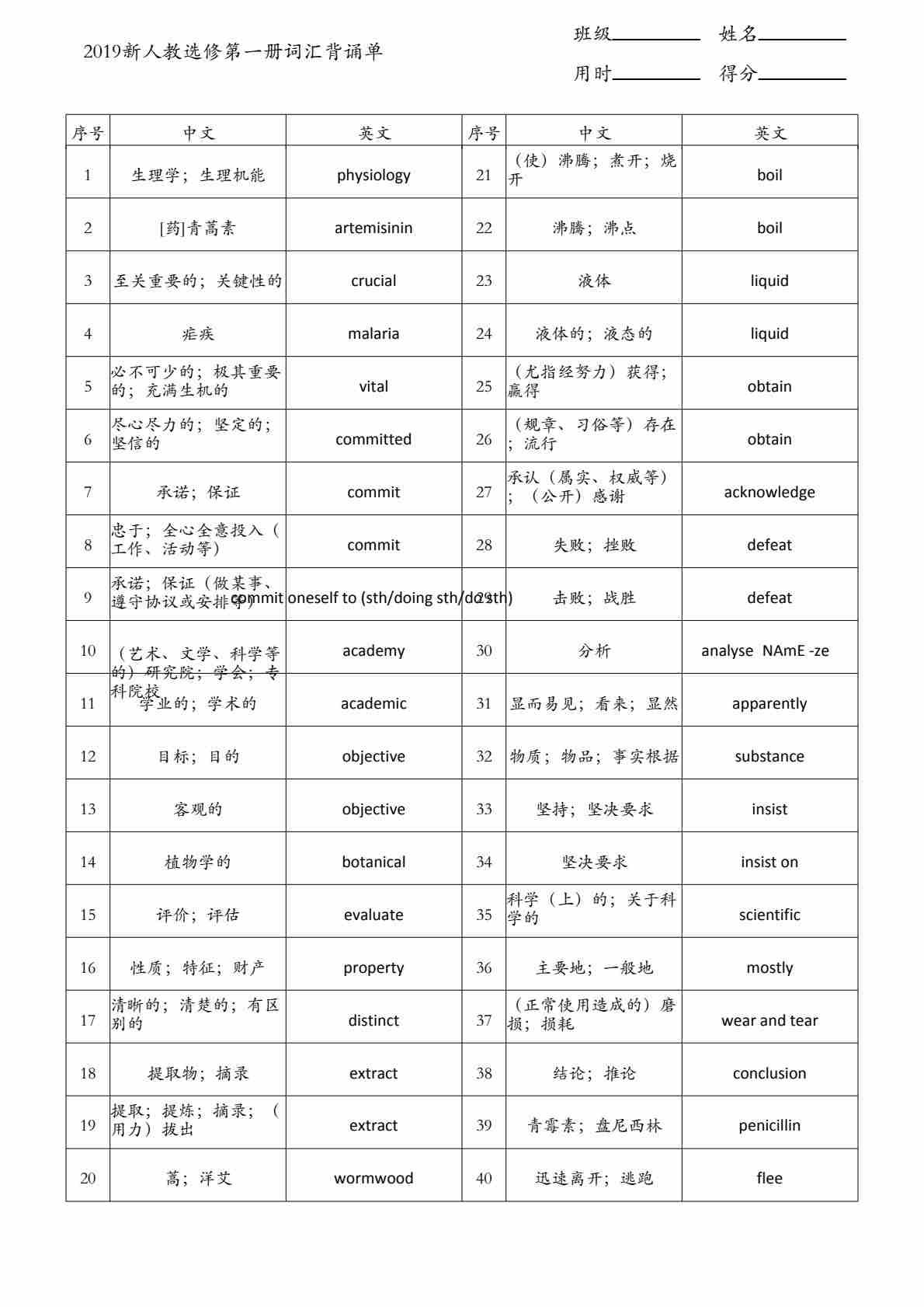 Unit 1 PEOPLE OF ACHIEVEMENT(单元知识清单)-(人教版2019选择性必修第一册)