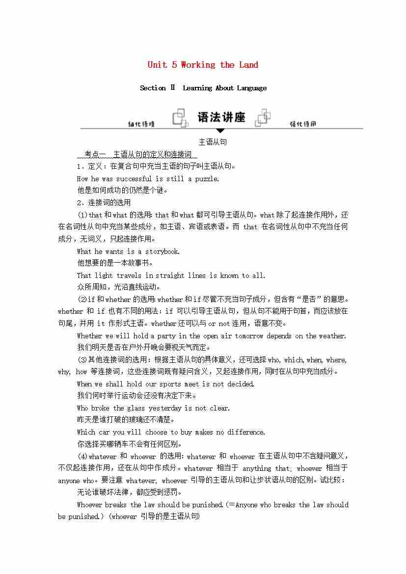 新教材高中英语Unit5WorkingtheLandSectionⅡLearningAboutLanguage含解析新人教版选择性必修第一册