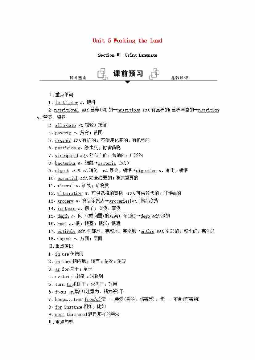 新教材高中英语Unit5WorkingtheLandSectionⅢUsingLanguage含解析新人教版选择性必修第一册