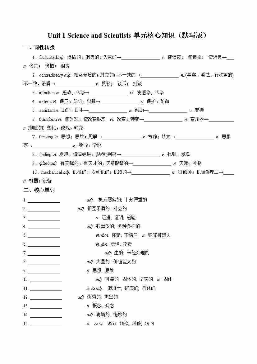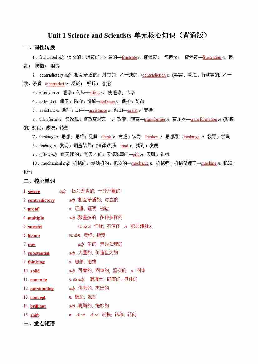 Unit 1 Science and Scientists(单元核心知识)(教师版)