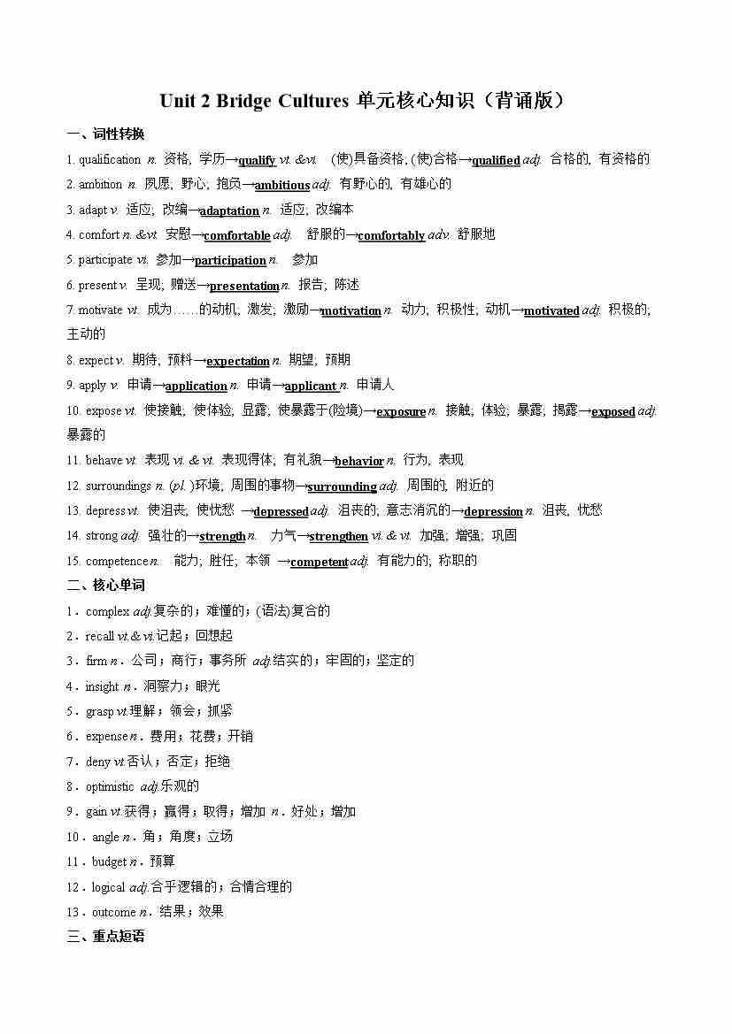 Unit 2 Bridge Cultures(单元核心知识)(学生版)
