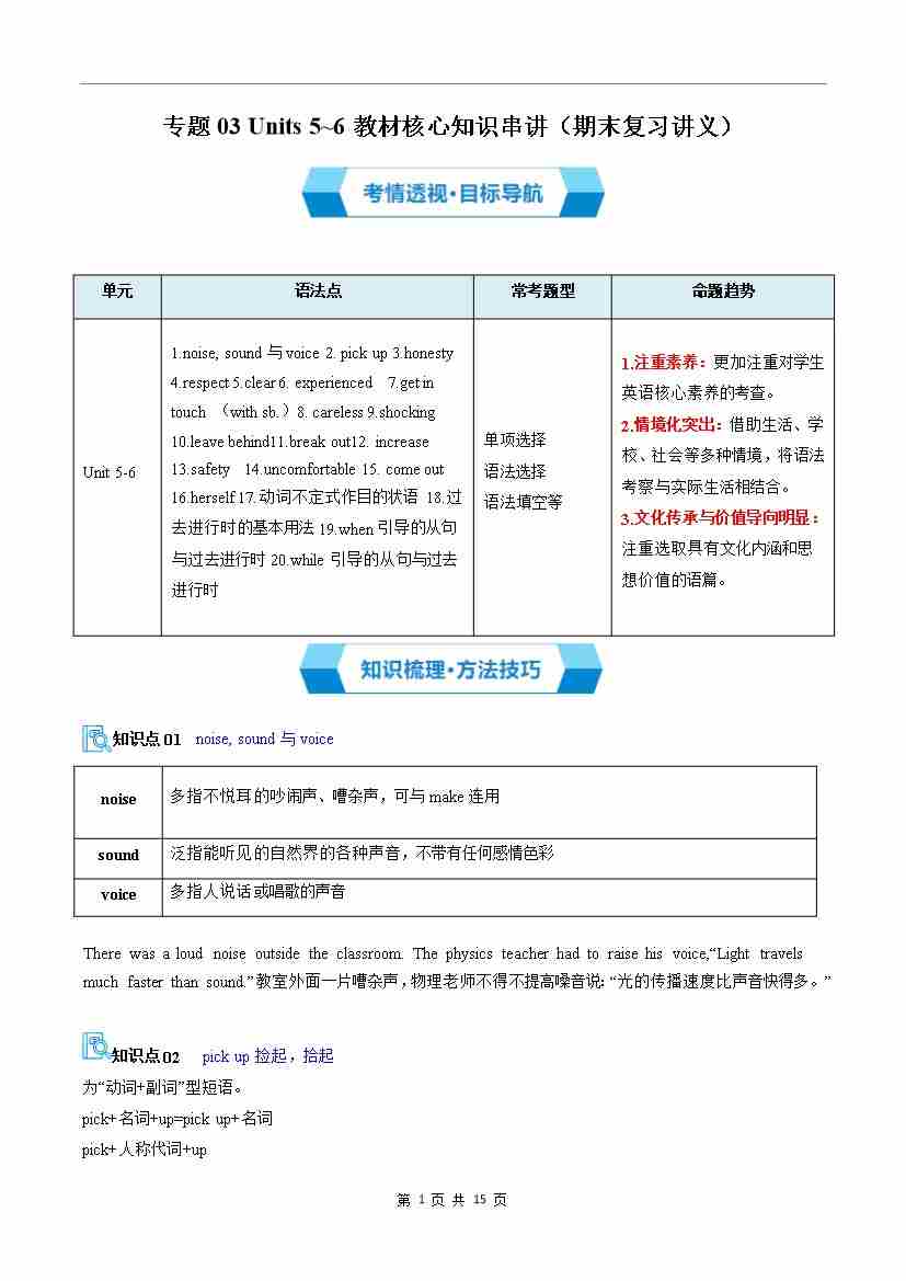 专题03 Units 5~6 教材核心知识串讲(期末复习讲义)(解析版)