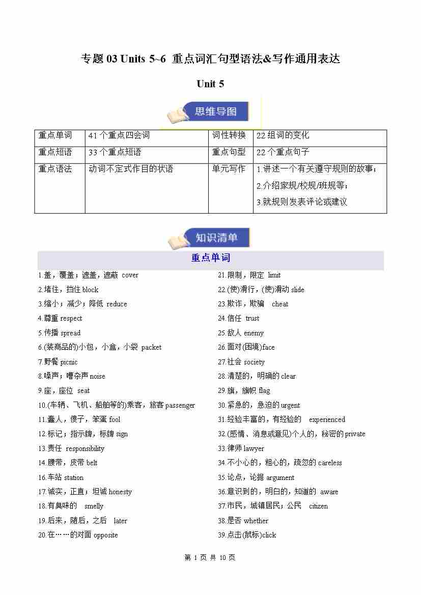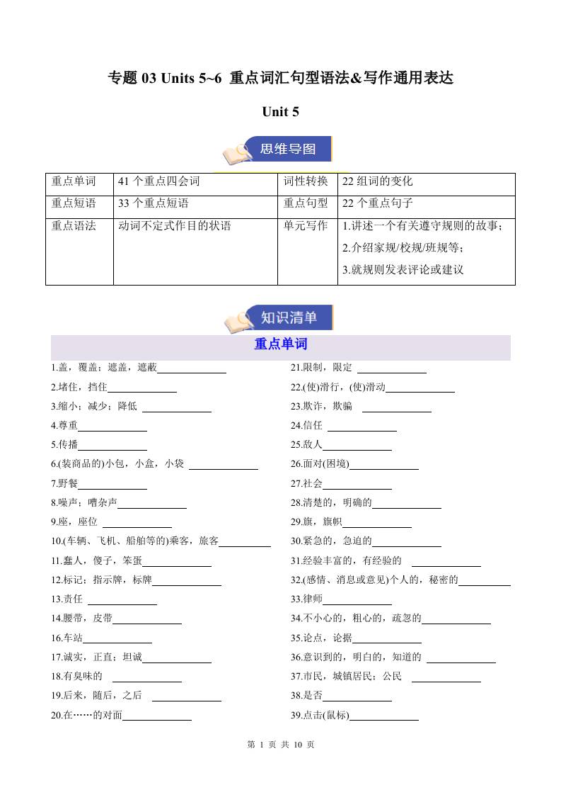 专题03 Units 5~6 重点词汇句型语法&写作通用表达(期末复习知识清单)(默写版)11