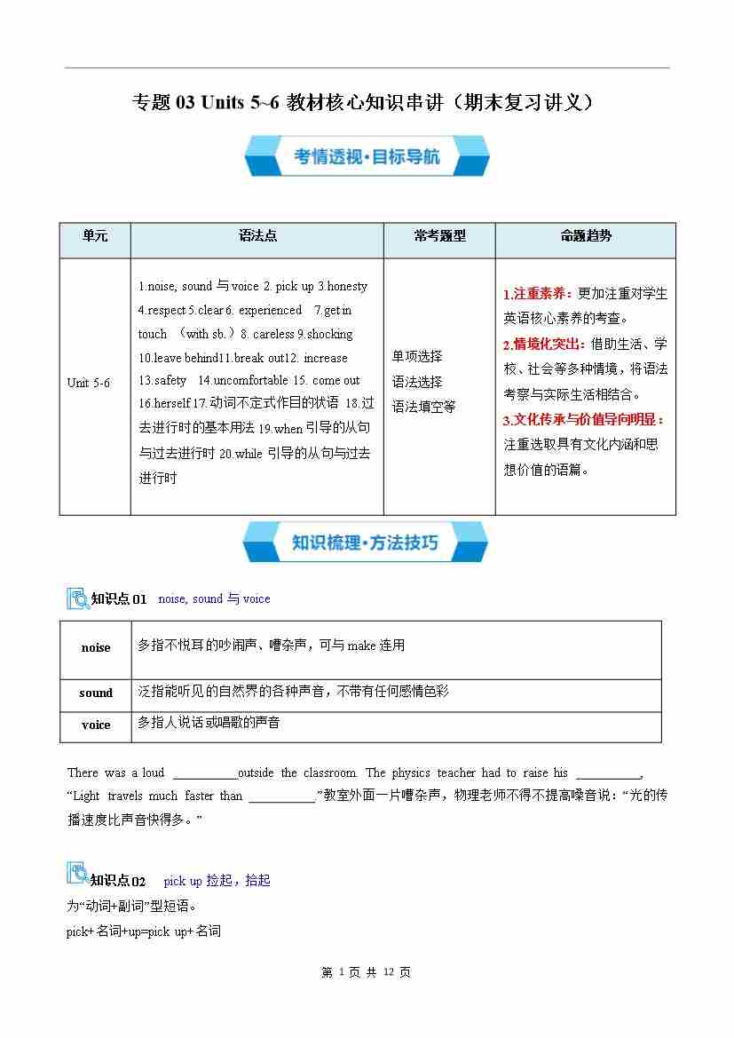 专题03 Units 5~6 教材核心知识串讲(期末复习讲义)(原卷版)