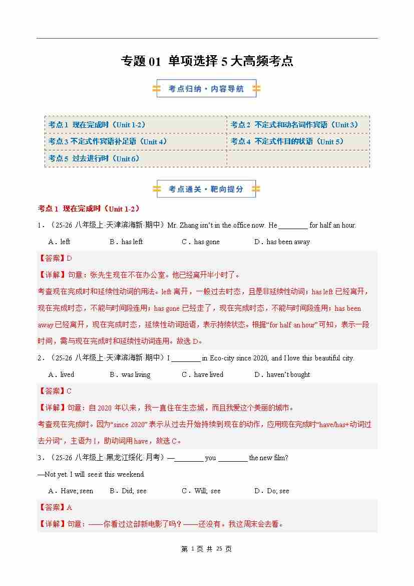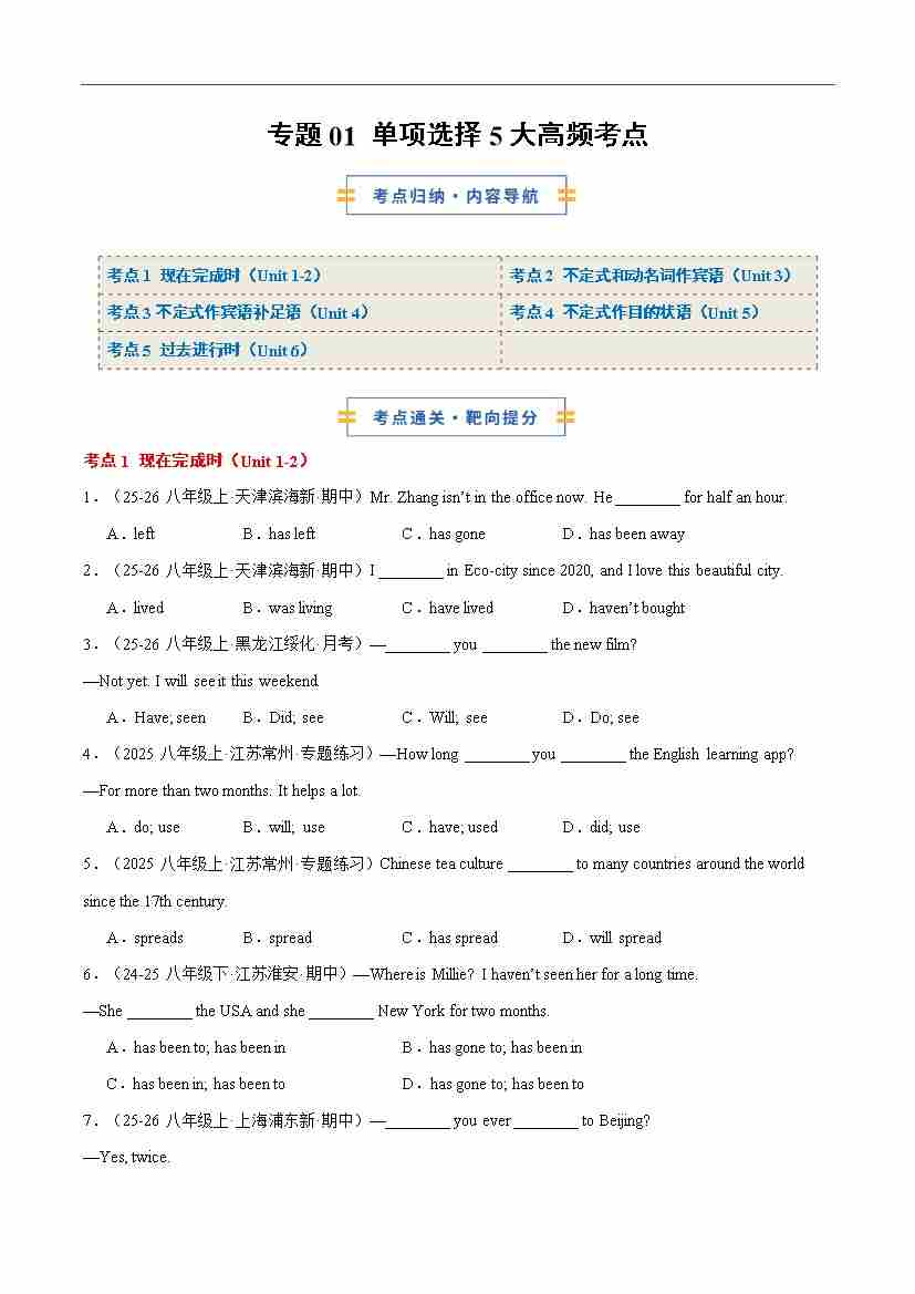 考前押题01 单项选择5大高频考点(期末复习专项训练)(解析版)
